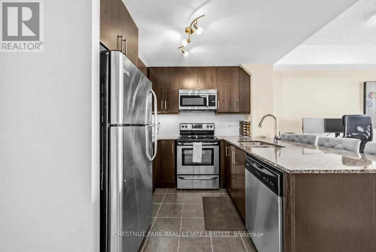 Bright and spacious, gorgeous one-bedroom condo (approx. 600sf + balcony) with a parking space and a locker, featuring unobstructed views, low maintenance fees, and conveniently located at Keele St. & Hwy 401. The ideal floor plan features a large modern open concept kitchen with granite counters, full-sized stainless steel appliances and a breakfast bar. The spacious living room and