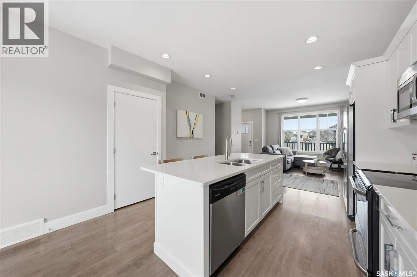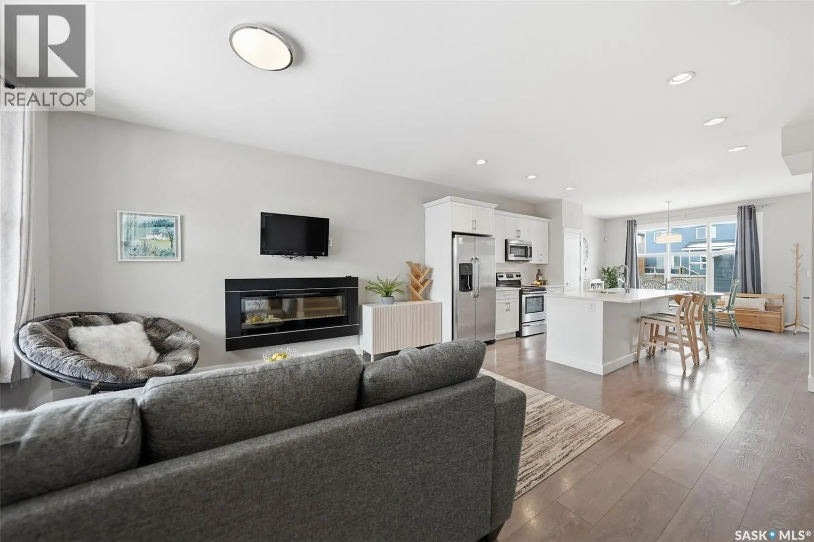 This well-maintained home is located in The Meadows of Rosewood and features a functional open-concept main floor with a spacious family room, dining area, and kitchen. The kitchen includes quartz countertops, a tiled backsplash, stainless steel appliances, pantry, white cabinetry, and an island with seating. Upstairs offers three generously sized bedrooms, all with large windows, built-in shelving, and French door