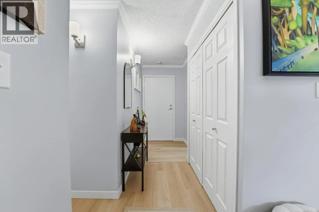 Stornoway, Nicely renovated 2nd floor 1 bedroom, 1 bath condo with 750SF of super spacious living with in-suite laundry! This south facing home features a remodeled kitchen, stainless steel appliances, nice back splash, laminate floors throughout, updated bathroom with extra large shower, electric fireplace, crown moldings lots of storage and large balcony off the living room. The huge bedroom can