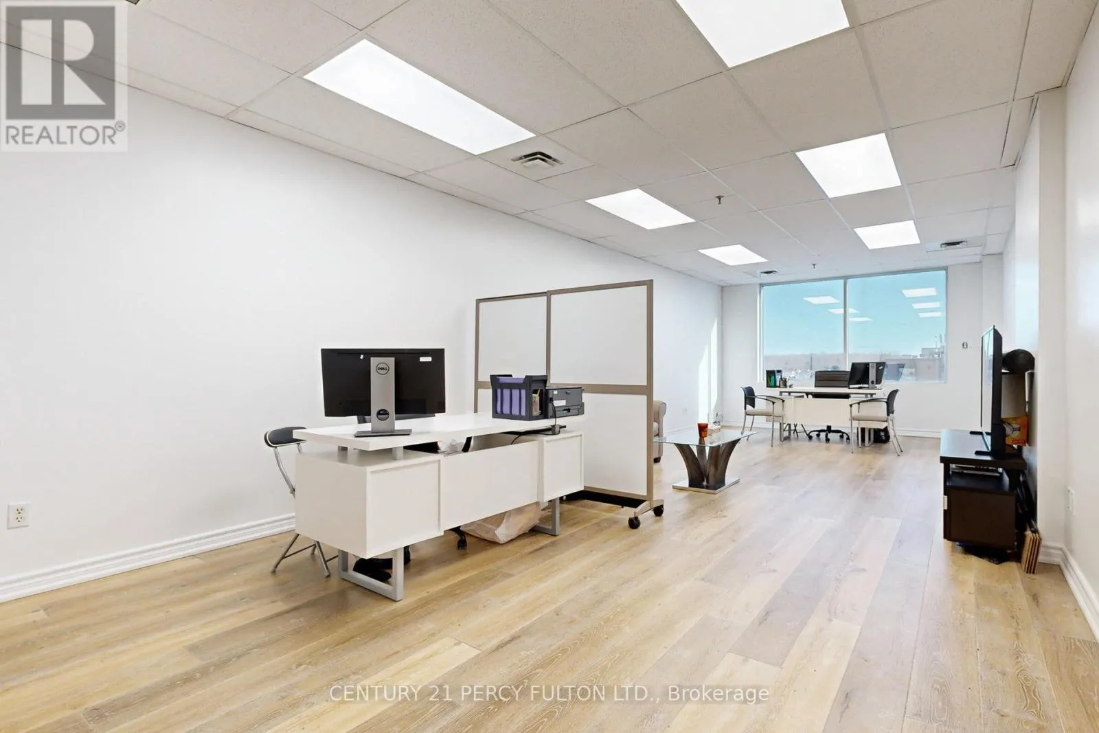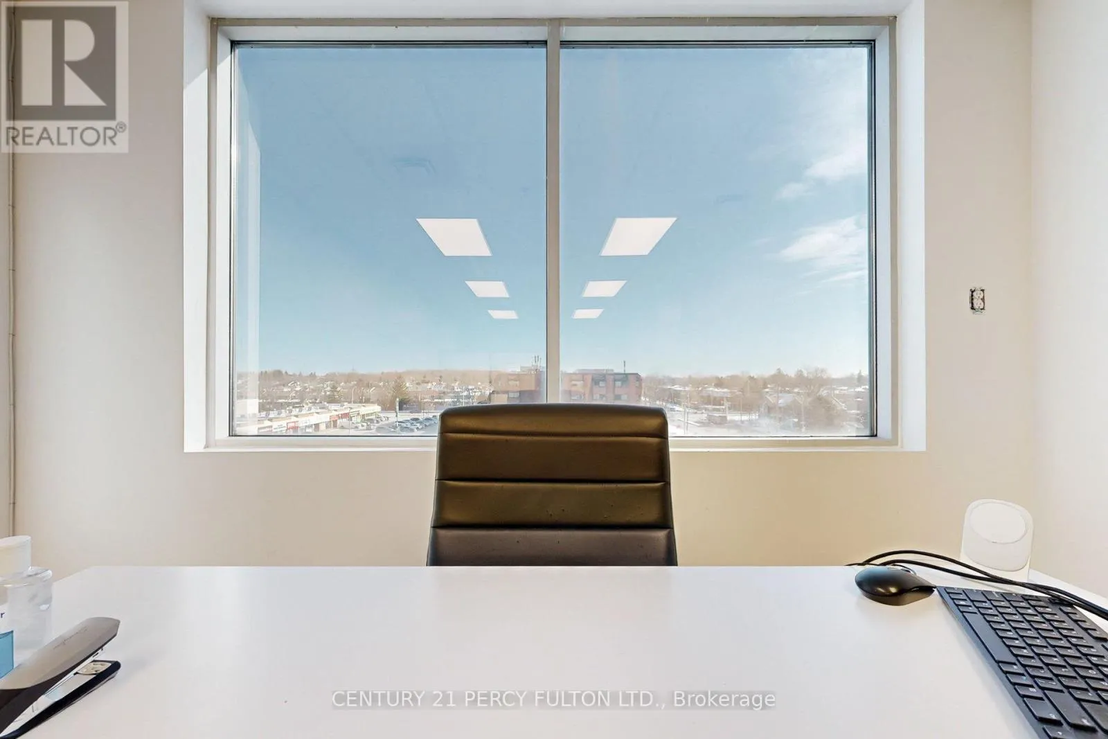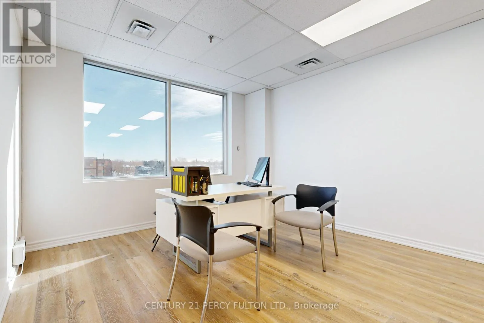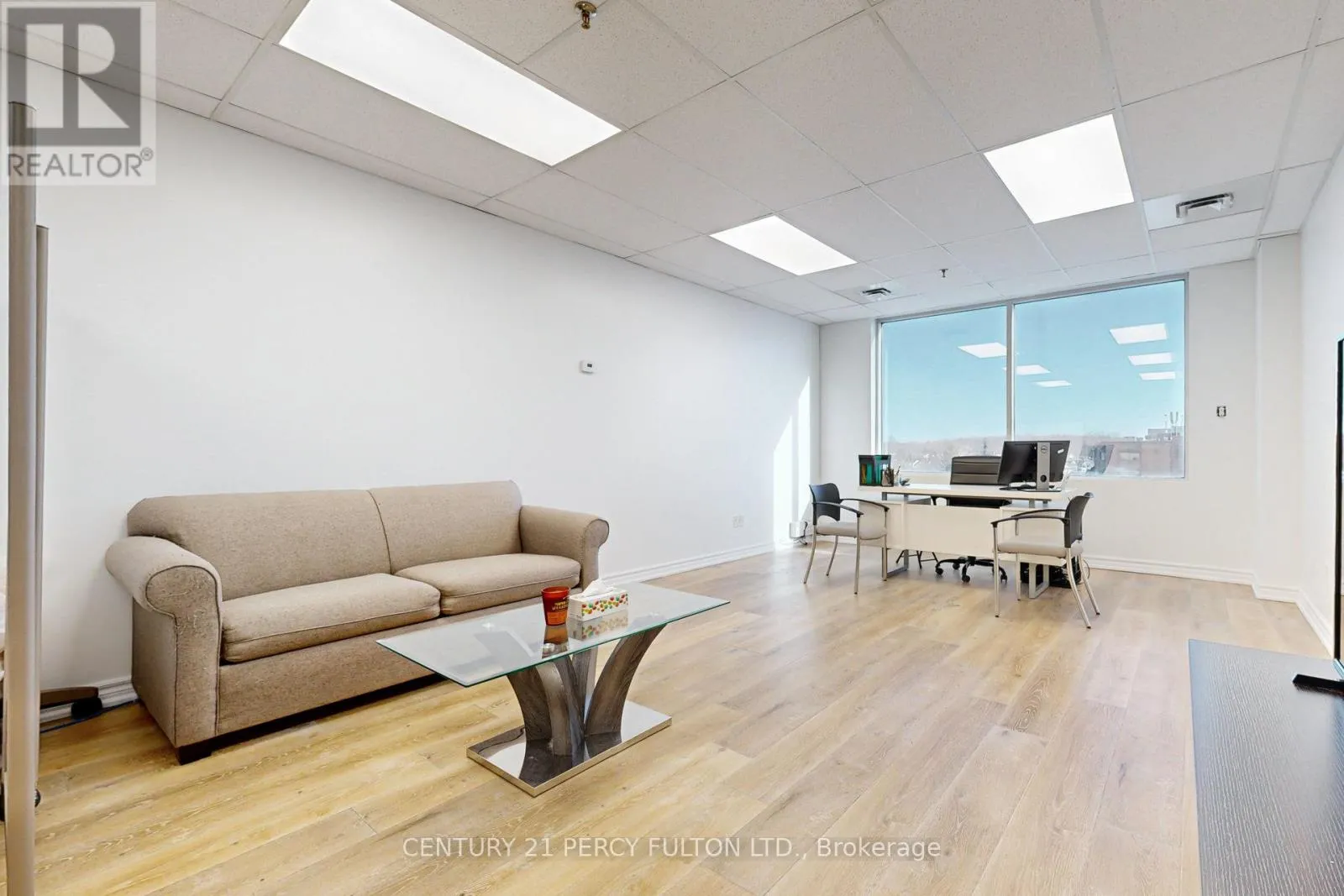 Rare Penthouse professional suite (594 SF) at 4168 Finch Ave East. This turn-key office features upgraded neutral laminate flooring, 8ft ceilings, and an enhanced soundproof wall for maximum privacy. Large East-facing windows offer bright views of a high-traffic plaza anchored by Tim Hortons, restaurants, and retail. Situated on a prestigious floor alongside established legal and medical practices, the unit includes