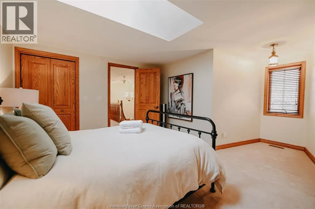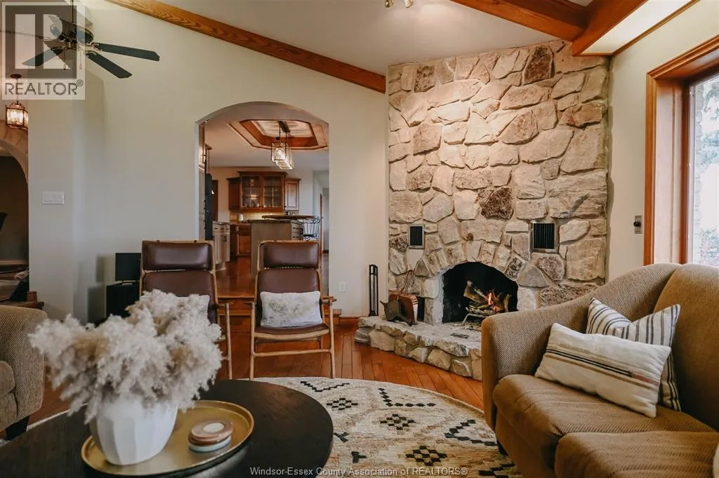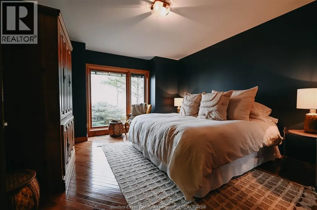 100 FT LAKE ST. CLAIR WATERFRONT. Enchanting 5-bedroom, 3.5-bath custom-built home set on a peaceful, tree-lined lot with stunning lake and sunset views. Offering approx. 3,637 sq ft, the home features 2 main-floor bedrooms including a primary suite with ensuite and walk-in closet, oak kitchen with wet bar and wood-burning fireplace, and distinctive architectural details including stone floors, exposed beams,