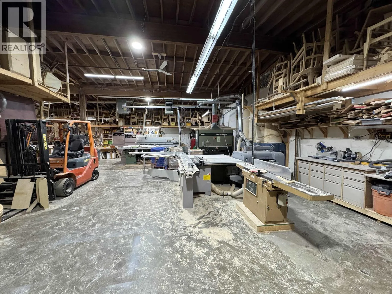 Koy Features: 1.Turn-Key Production Facility Complete setup with industrial-grade machinery including: Sliding panel saws Planers and jointers Band saw and shaping equipment Multiple workstations and assembly areas 2.Licensed Spray Booth (Major Value) Fully enclosed and ventilated finishing room Professionally configured drying rack system City-permitted operation, saving significant time and cost for new owners 3. Efficient Workflow Layout Dedicated cutting, assembly,