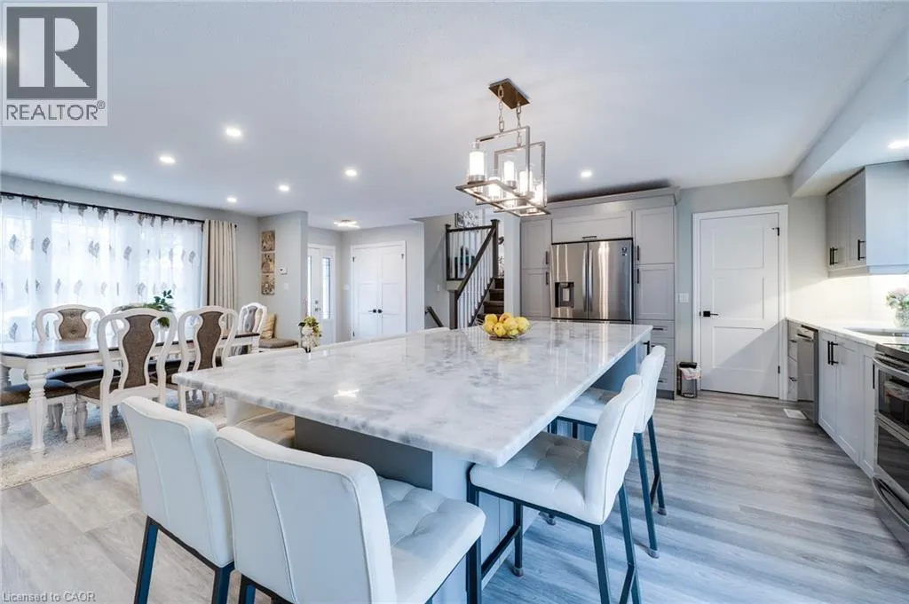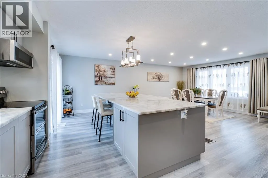 Attention empty nesters and first-time buyers! Ideally located just minutes from Hwy 401 and close to schools, shopping, library, parks, and places of worship, this property combines comfort with convenience. The main level has been renovated into a generous open-concept space that includes the foyer, dining room/living room, and kitchen. The kitchen is truly the centerpiece of the home, featuring