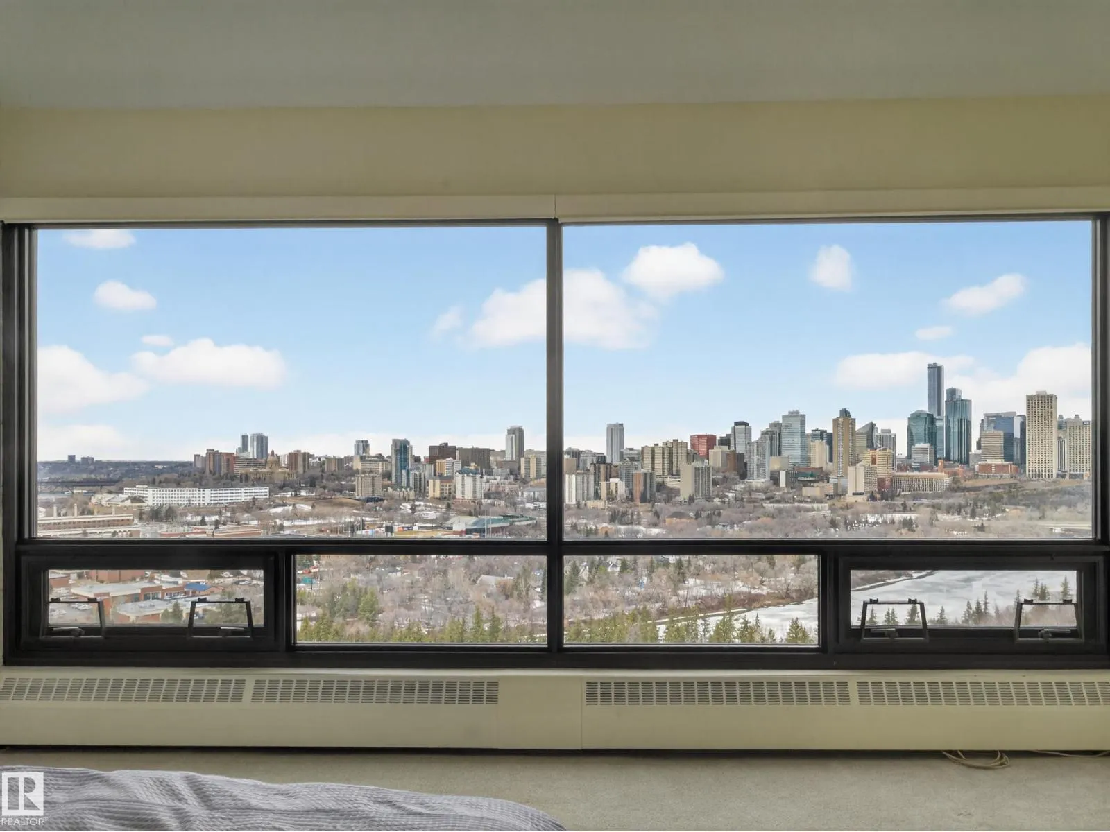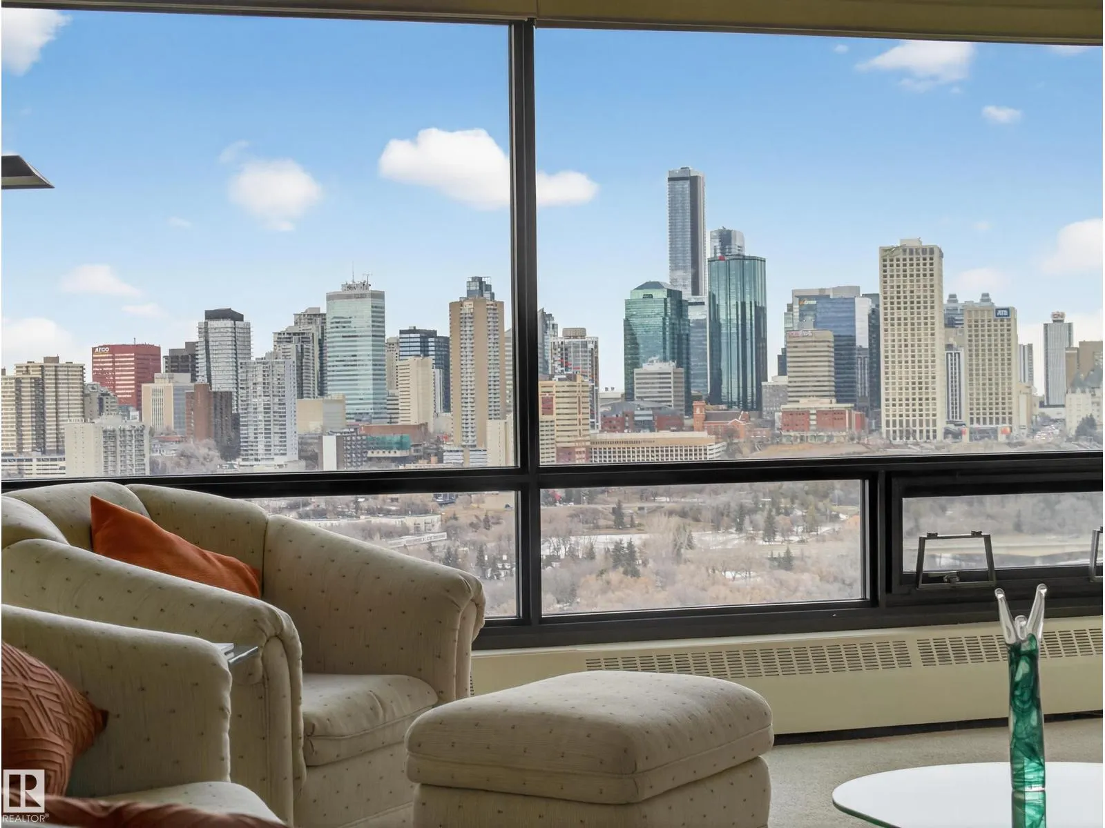 Perched on the 10th floor, this exceptional condominium offers more than a home—it’s a lifestyle defined by breathtaking views of Edmonton’s river valley and sparkling skyline. Floor-to-ceiling windows fill the open, airy layout with natural light, creating a seamless blend of comfort and sophistication. Enjoy fireworks and even a baseball game from your living room, where the city becomes your