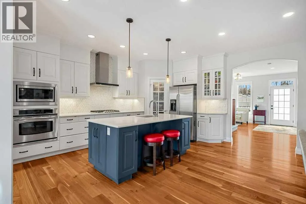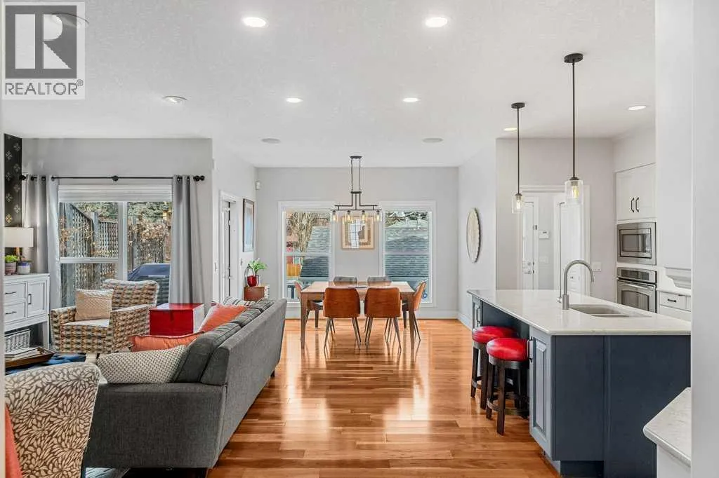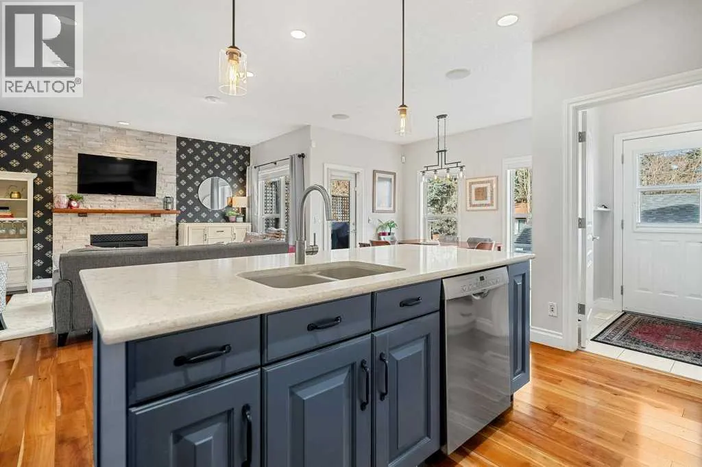9’ ceilings and a large, welcoming front foyer. Natural south light pours through from the front of the home, giving it a warm, comfortable feel throughout the day. Over the years, the home has been thoughtfully updated, including refreshed paint throughout, upgraded lighting, and additional pot lights in both the kitchen and basement hallway.The kitchen was updated in 2018 with new countertops, backsplash, hood fan, and full-height cabinets for a clean, finished look. Designed for both everyday living and entertaining, it features a large island, gas cooktop, built-in oven, and a pantry with ample storage. The kitchen flows seamlessly into the dining area and living room, which features a updated fireplace surround. At the front of the home, a separate formal dining room offers an ideal space for hosting dinners.Upstairs you will find three bedrooms plus a loft/office with a skylight, ideal for working from home or as a flexible bonus room. The primary bedroom is generously sized, and the en-suite bathroom has been thoughtfully updated with tile flooring, electric in-floor heat, a spacious glass shower, new tile around the bath tub & shower and also comes with a walk-in closet.The fully finished basement adds even more usable space, with a fourth bedroom, full bathroom, and a large rec/media area, along with generous storage and a laundry room.This home has seen significant mechanical and exterior updates, including a new furnace and the addition of air conditioning in 2024, a new roof on both the house and garage (2022), and a replaced garage door (2019). The hardie board siding is also a nice feature. Outdoor improv ements include custom aluminum railings at the front, a resurfaced upper deck and added storage access below the deck. This home also comes with an upgraded sprinkler system with new controller and heads (2025).Complete with a double detached garage and located just steps from parks, schools, and the amenities of Marda Loop and Garrison, this is a well-cared-for & very well maintained home in one of Calgary’s most established inner-city communities. (id:64429)