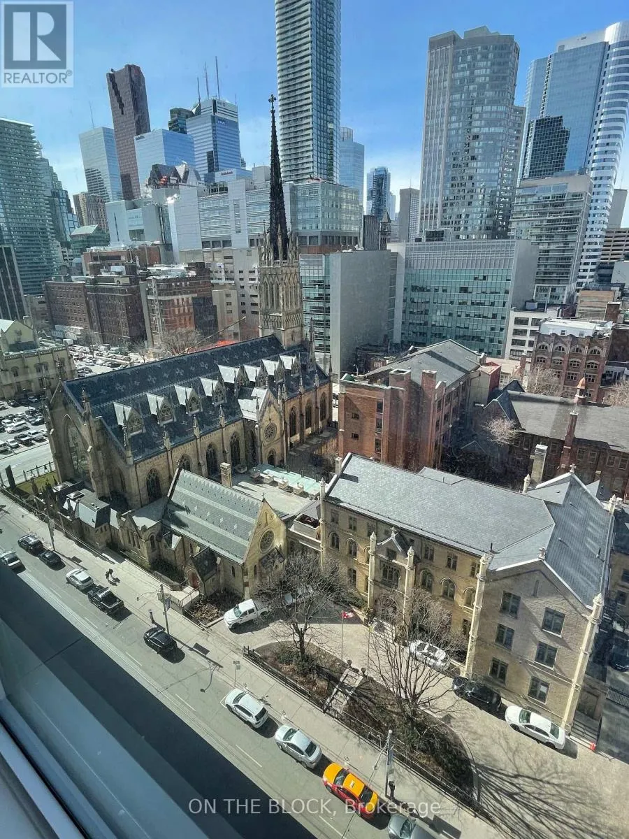 Welcome to 199 Church! This pristine unit boasts a contemporary aesthetic with stylish neutral tones throughout. The kitchen is adorned with a modern herringbone backsplash and seamlessly integrated appliances. Floor-to-ceiling windows flood the space with natural light, offering a breathtaking panoramic view of the city, including the majestic St. Michael’s Cathedral. Built in 2024, this residence enjoys a prime location