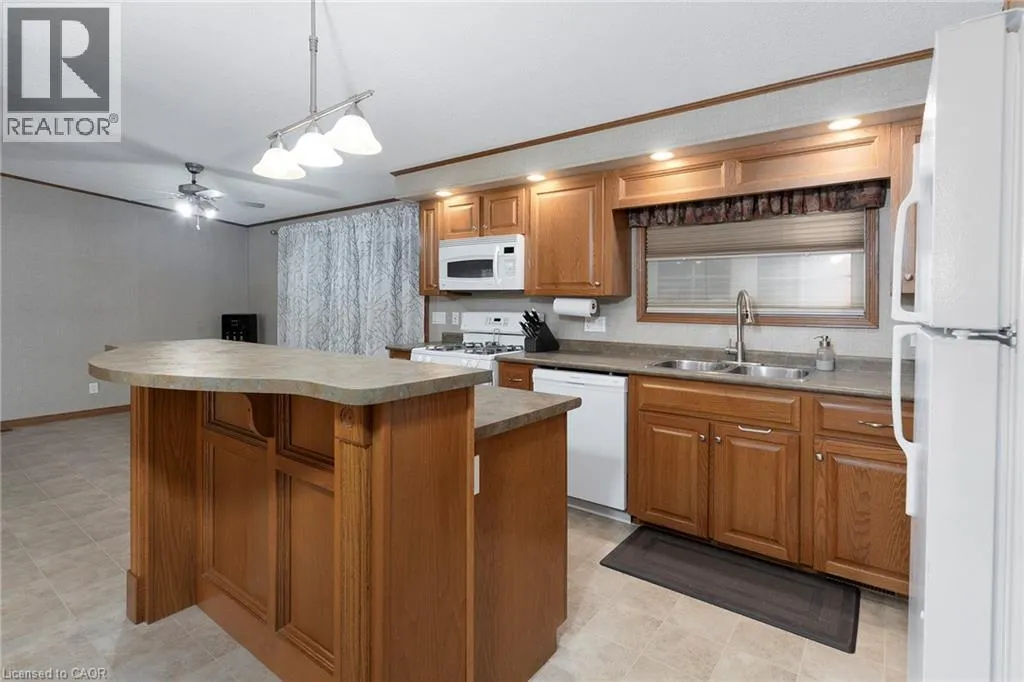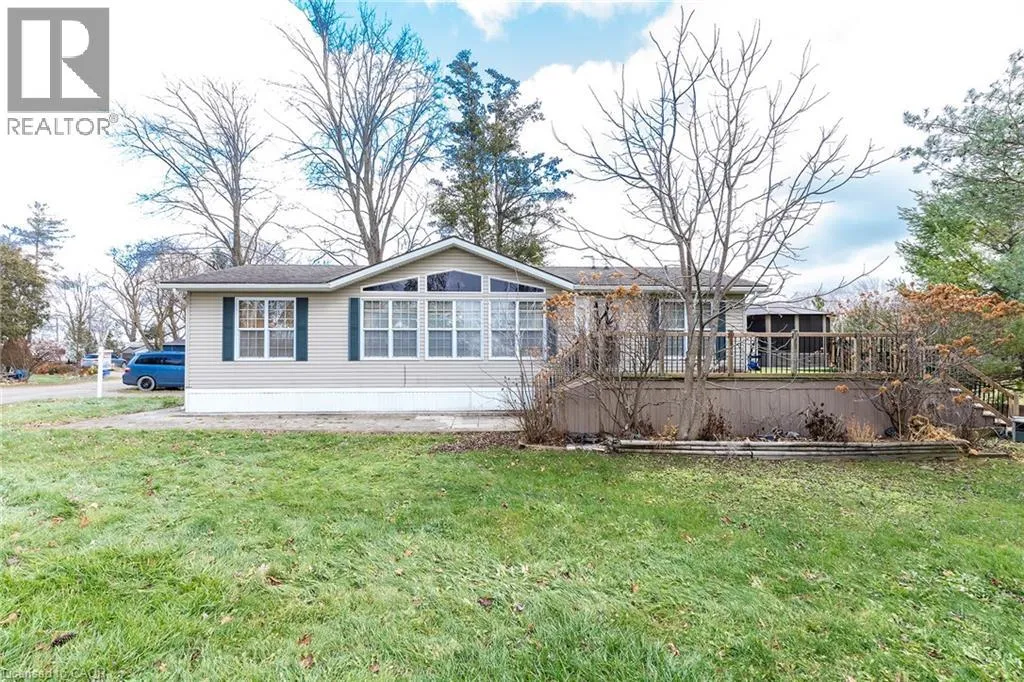 UNIQUE YEAR ROUND PROPERTY!!! Check out this spacious 50′ x 26′ Northlander on a large lot. This great property offers two great sized bedrooms & the convenience of two baths. The spacious Liv Rm offers a double sided See-Through Napoleon fireplace & plenty of windows to enjoy nature, Din Rm is open to the Kitch giving ample space for family