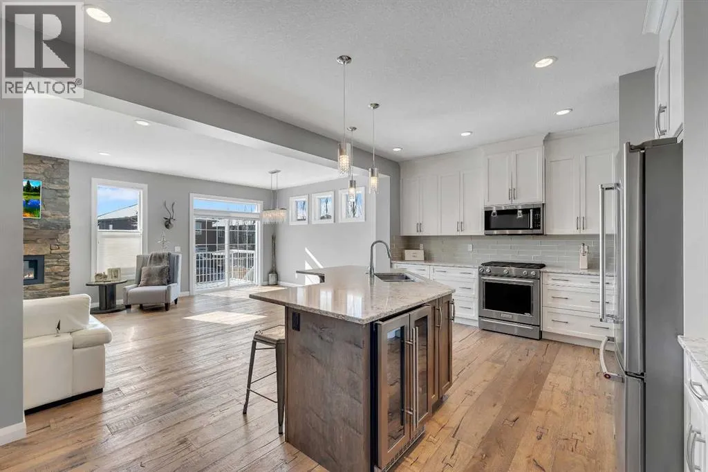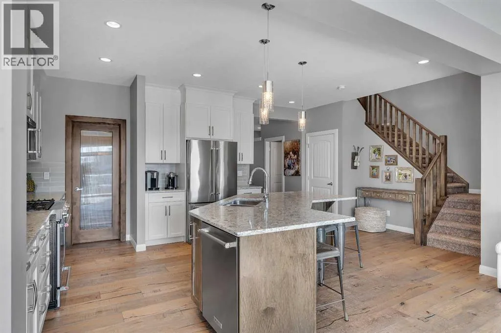 Welcome Home! This 2 story residence has so much to offer and features: 3,400+sq ft fully finished space w/ 5 bed, 3.5 bath + bonus | backing walking path + steps to rubber floor park | upgraded interior specifications | massive rear deck + landscaped | and so much more! All located in the developed Airdrie community ‘Ravenswood’ – with