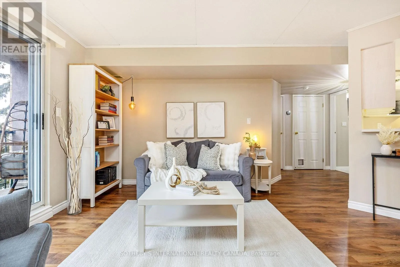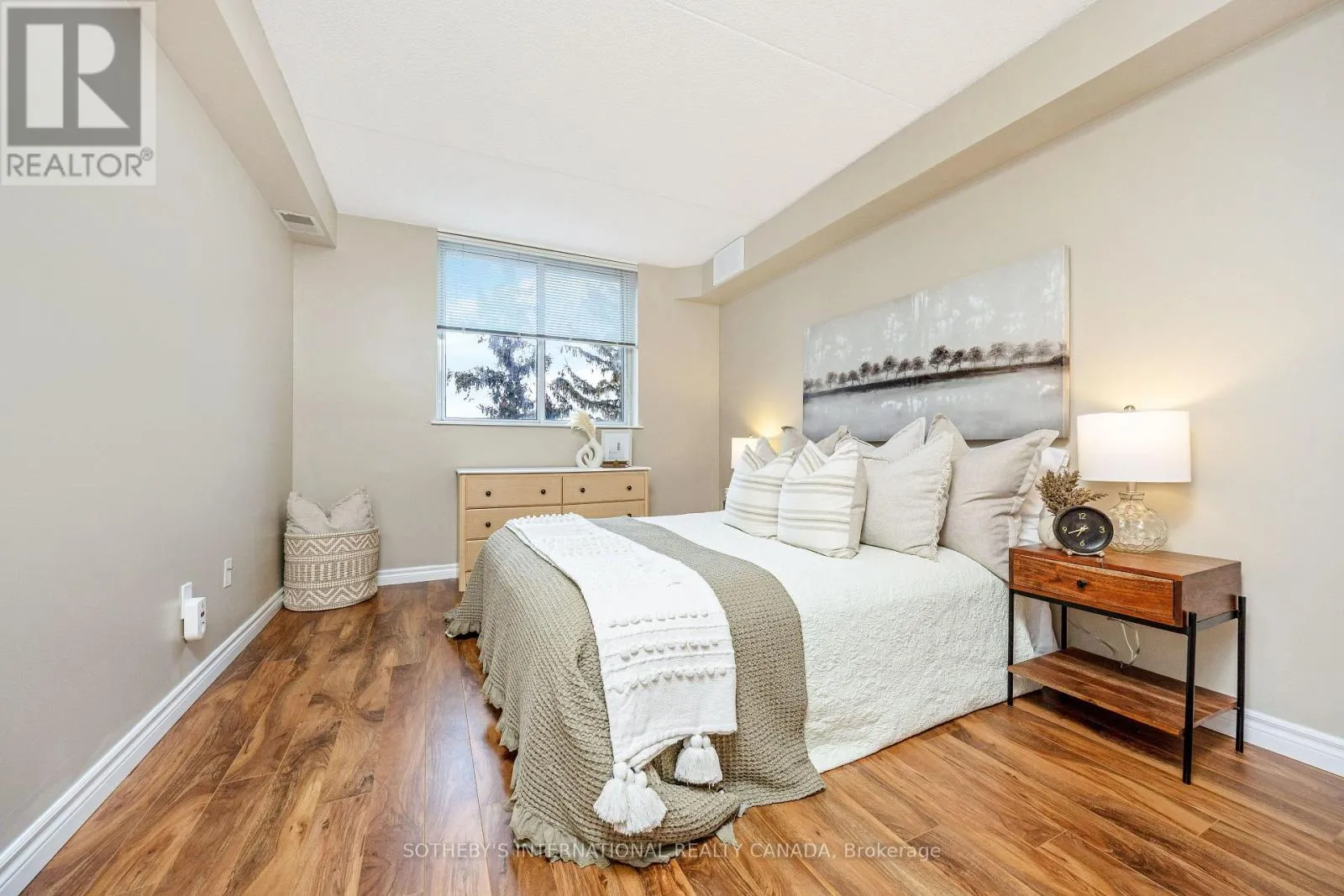 Welcome to this freshly painted top-floor condo featuring a bright open-concept floor plan and private balcony overlooking landscaped grounds. Finished in warm, neutral tones, this unit offers in-suite laundry, a locker conveniently located on the same level, and one owned underground parking space. Located in a quiet, well maintained building with excellent amenities including a meeting/party room, exercise