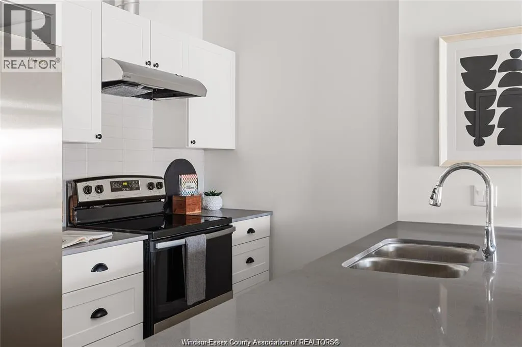 Experience luxury living at The Canadian at The Argyle in Walkerville, Windsor! This stunning one-bedroom loft blends modern elegance with industrial charm, featuring exposed ductwork ceilings and sleek quartz countertop. The accessible features are throughout this suite with a walk in shower, wall oven and accessible cook-top & sink. Enjoy the convenience of in-suite laundry, a stylish bathroom, and secure