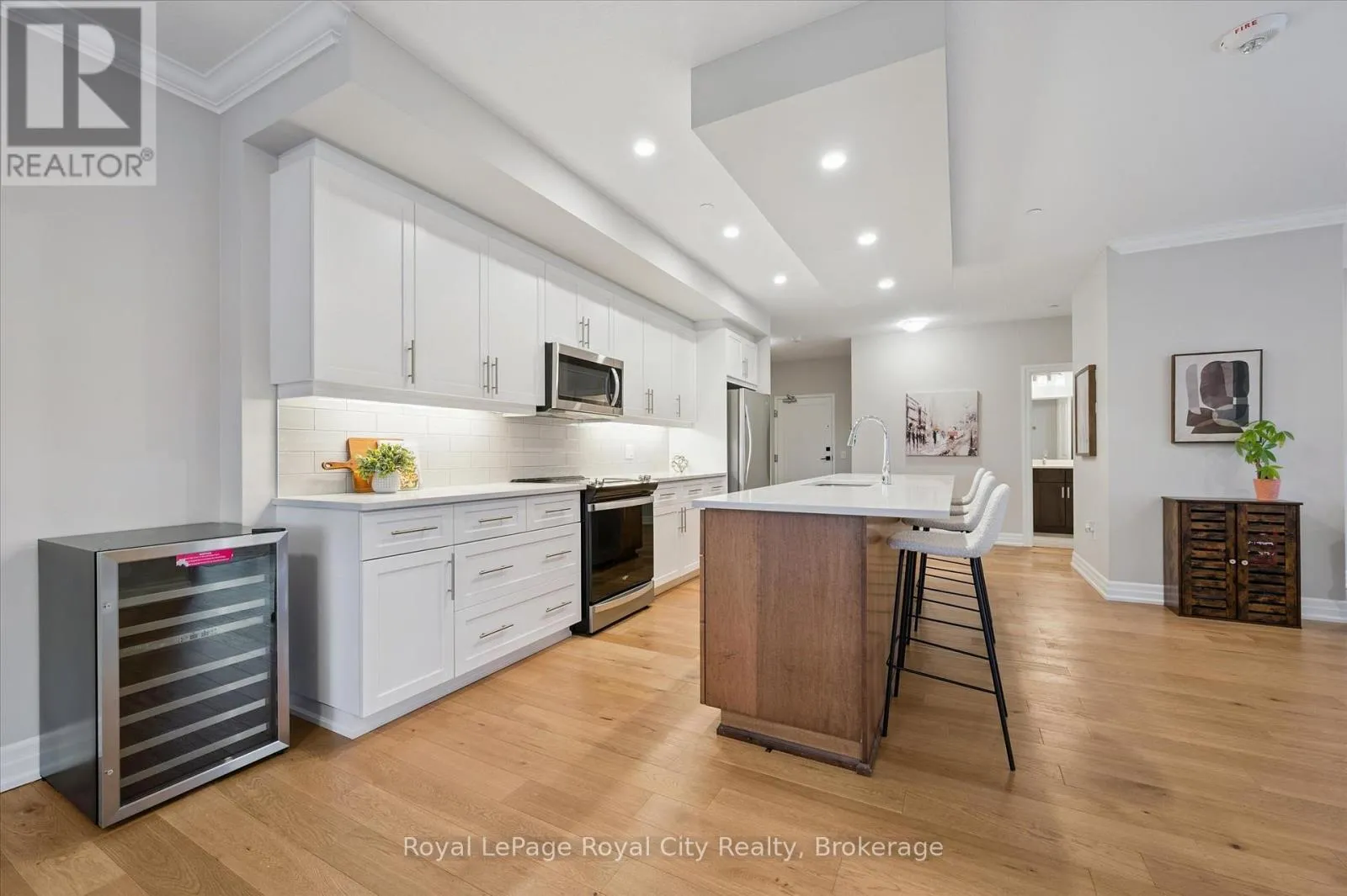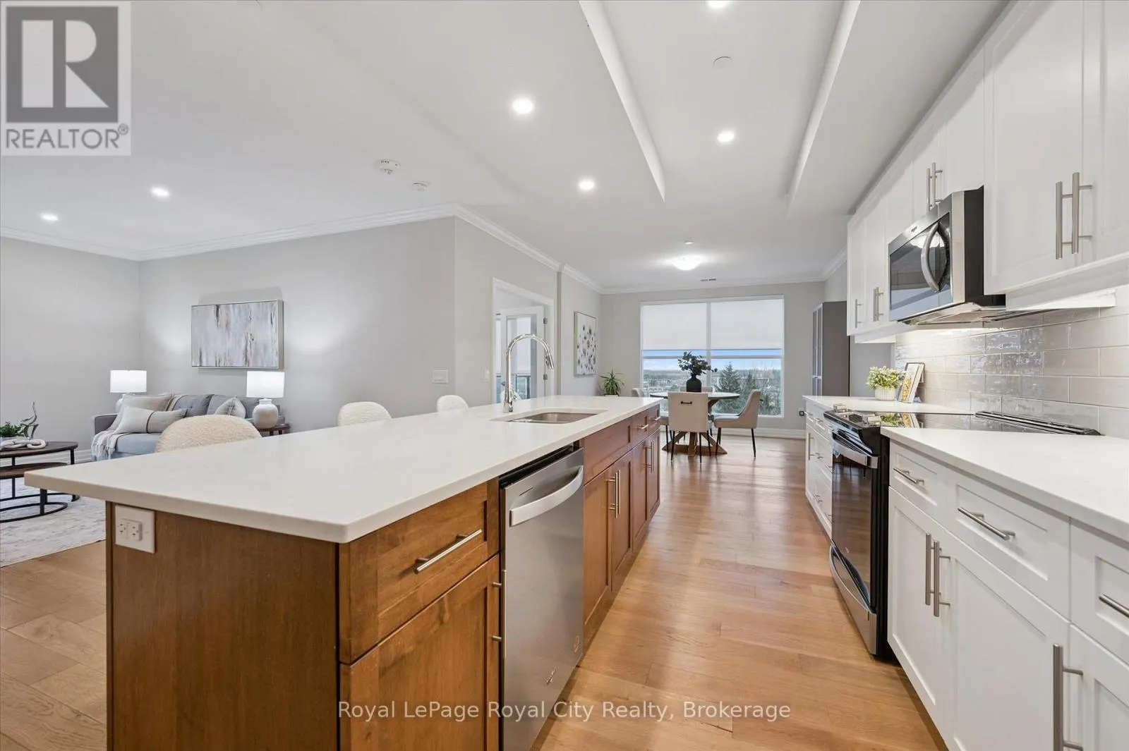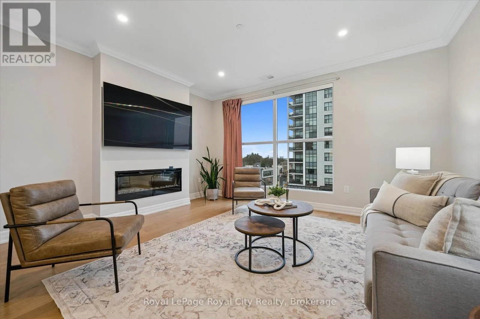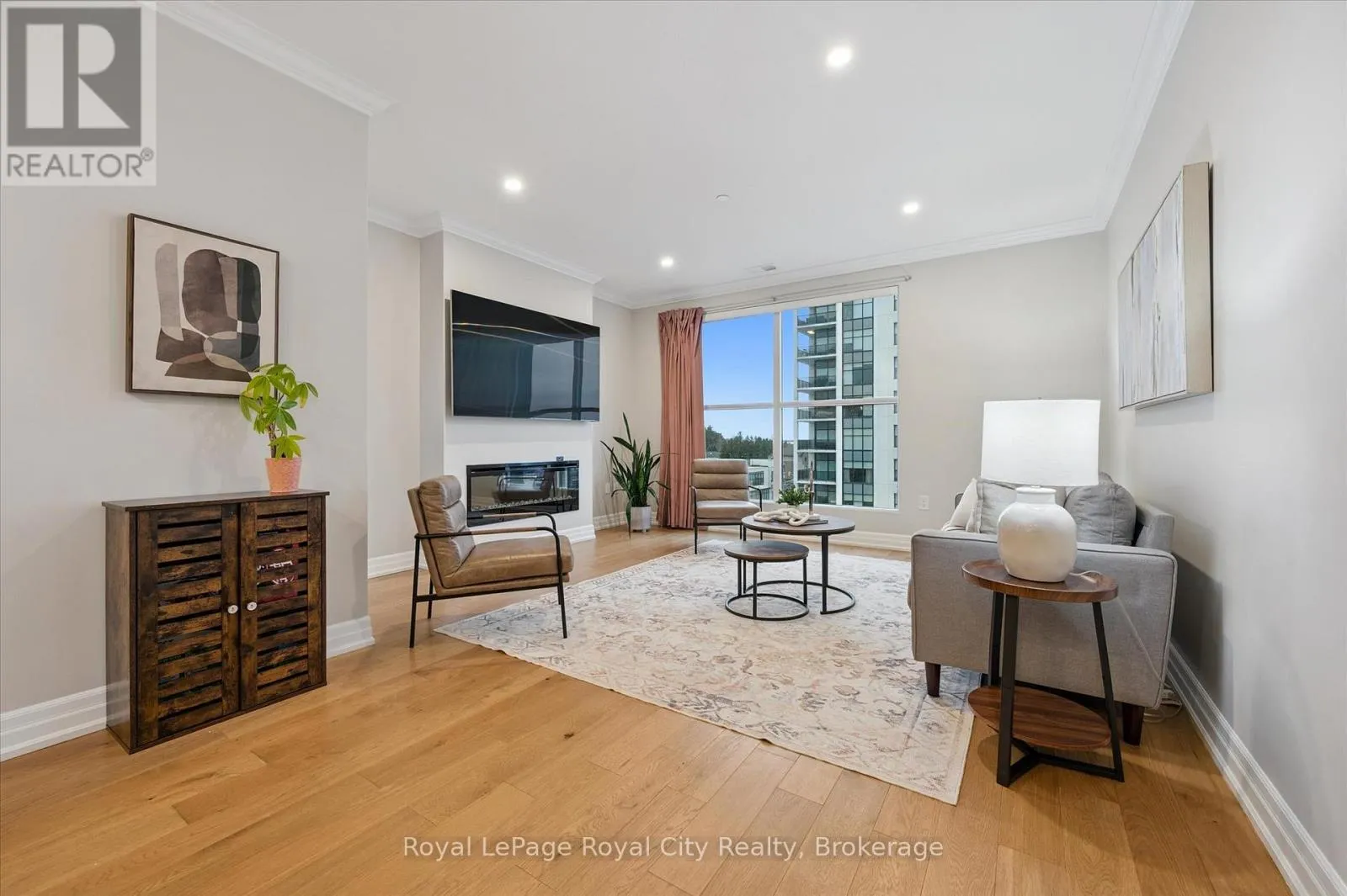 Situated in the prestigious Gordon Square Towers, Suite 505 is an exceptional executive 2 bedroom + den corner residence that is a show stopper! Designed for those who value elevated living, this luxurious condominium showcases floor-to-ceiling windows framing breathtaking views from every room, flooding the space with natural light and highlighting the soaring ceilings and rich engineered hardwood . The