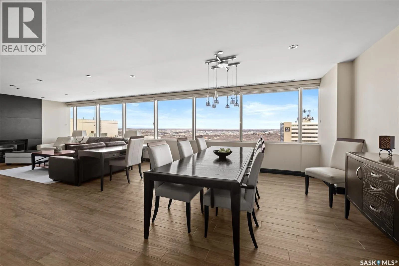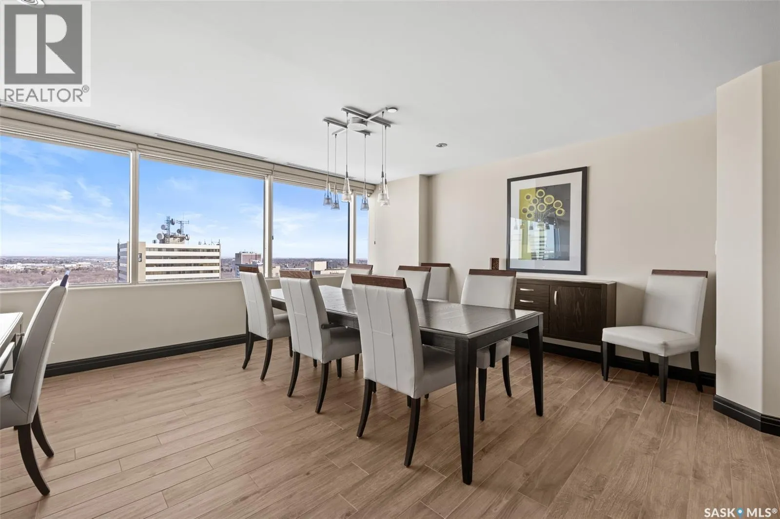 An exceptional penthouse residence crowning the iconic TD Tower, this is a rare offering defined by light, scale, and uninterrupted perspective. Positioned at the very top, this home showcases over 40 feet of sweeping east-facing exposure—delivering a panoramic, unobstructed city skyline. Inside, a generous open-concept layout anchors the home, where kitchen, dining, and living spaces flow seamlessly together—designed for both