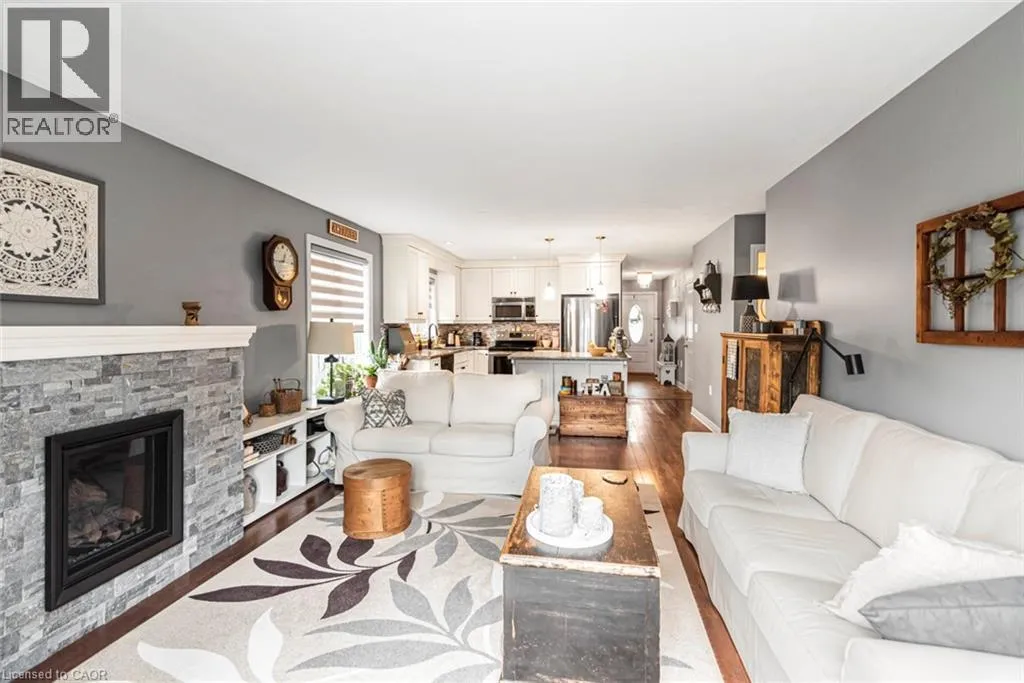 Welcome to this well-maintained 2016 home on a quiet street in Dunnville, offering a comfortable layout and a long list of recent updates. Fresh main floor paint (2025), new front and back landscaping (2024), a beach stone garden path (2025), and a stone gas fireplace added in 2024 all contribute to the move-in-ready feel. The main floor features engineered hardwood
