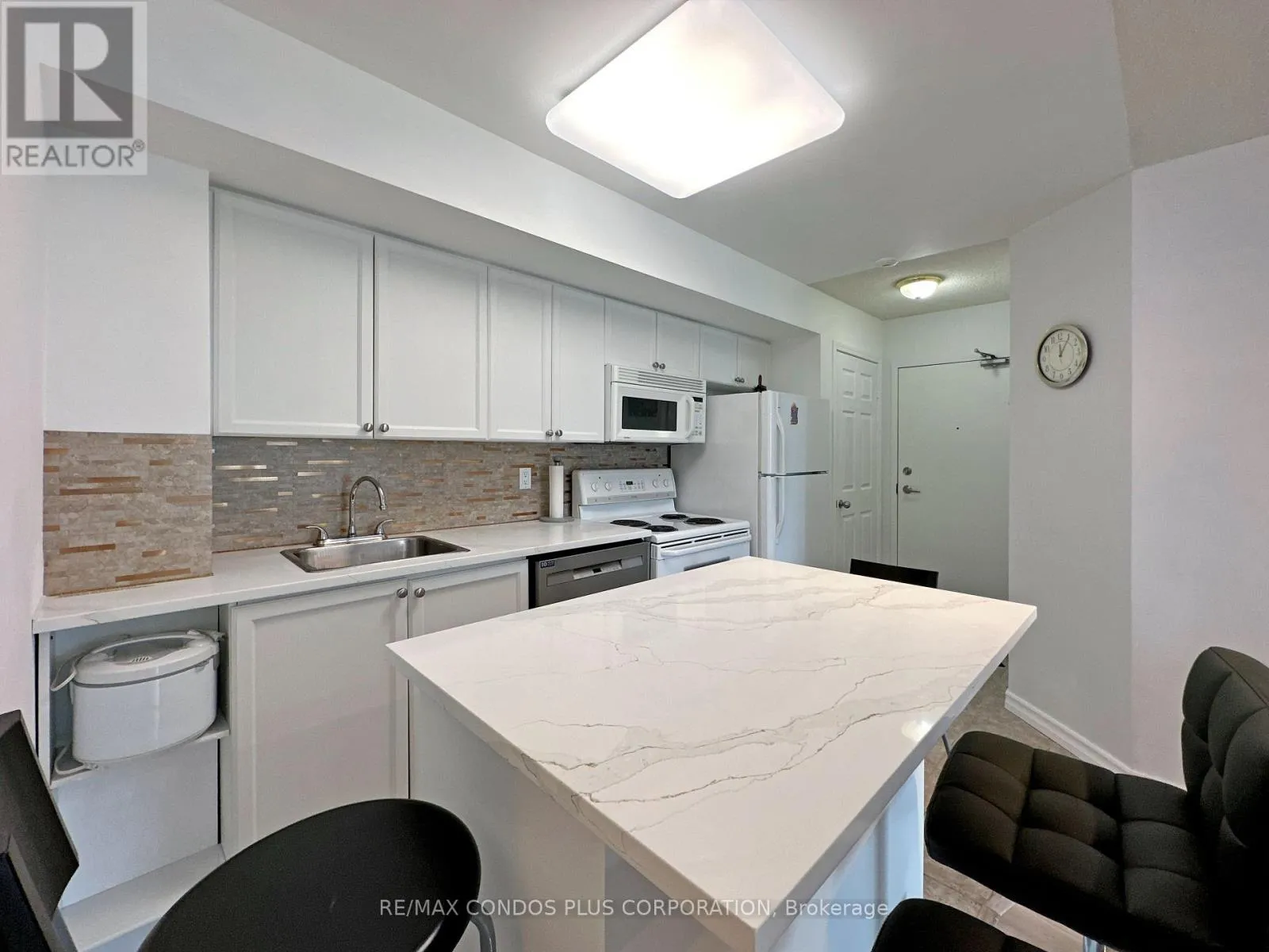 Fully furnished 1-bedroom plus den, 1-bath suite with 1 parking included. Stylishly furnished and tastefully decorated for comfortable everyday living. Functional layout with laminate flooring throughout and a versatile den that can be used as a home office or second bedroom. Modern kitchen features a centre island with high chairs, ideal for casual dining or entertaining. Bright living room enjoys