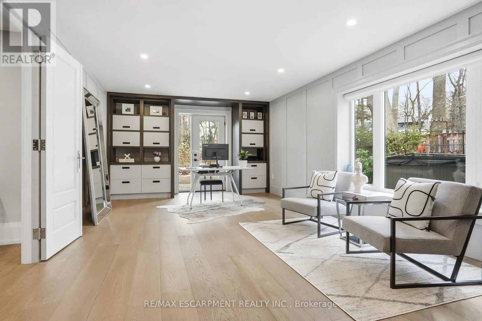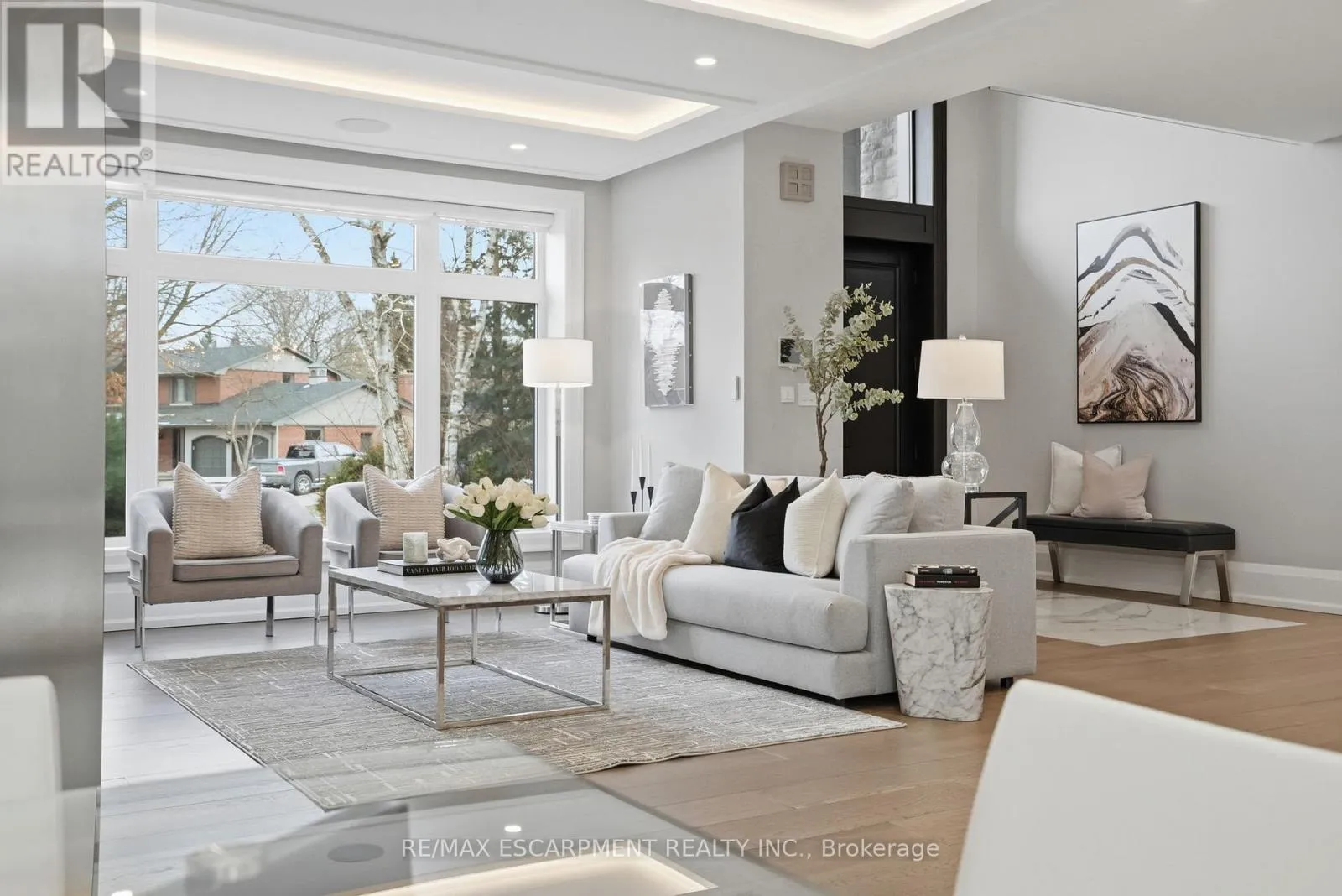 A striking expression of modern design and refined living, this custom-built residence is ideally located in the prestigious Whiteoaks of Jalna enclave of Lorne Park. Showcasing exceptional craftsmanship and curated finishes throughout, the home blends bold architectural presence with thoughtfully designed, highly functional living spaces. A dramatic double-height foyer with approximately 20 ft ceilings creates a grand sense of arrival,