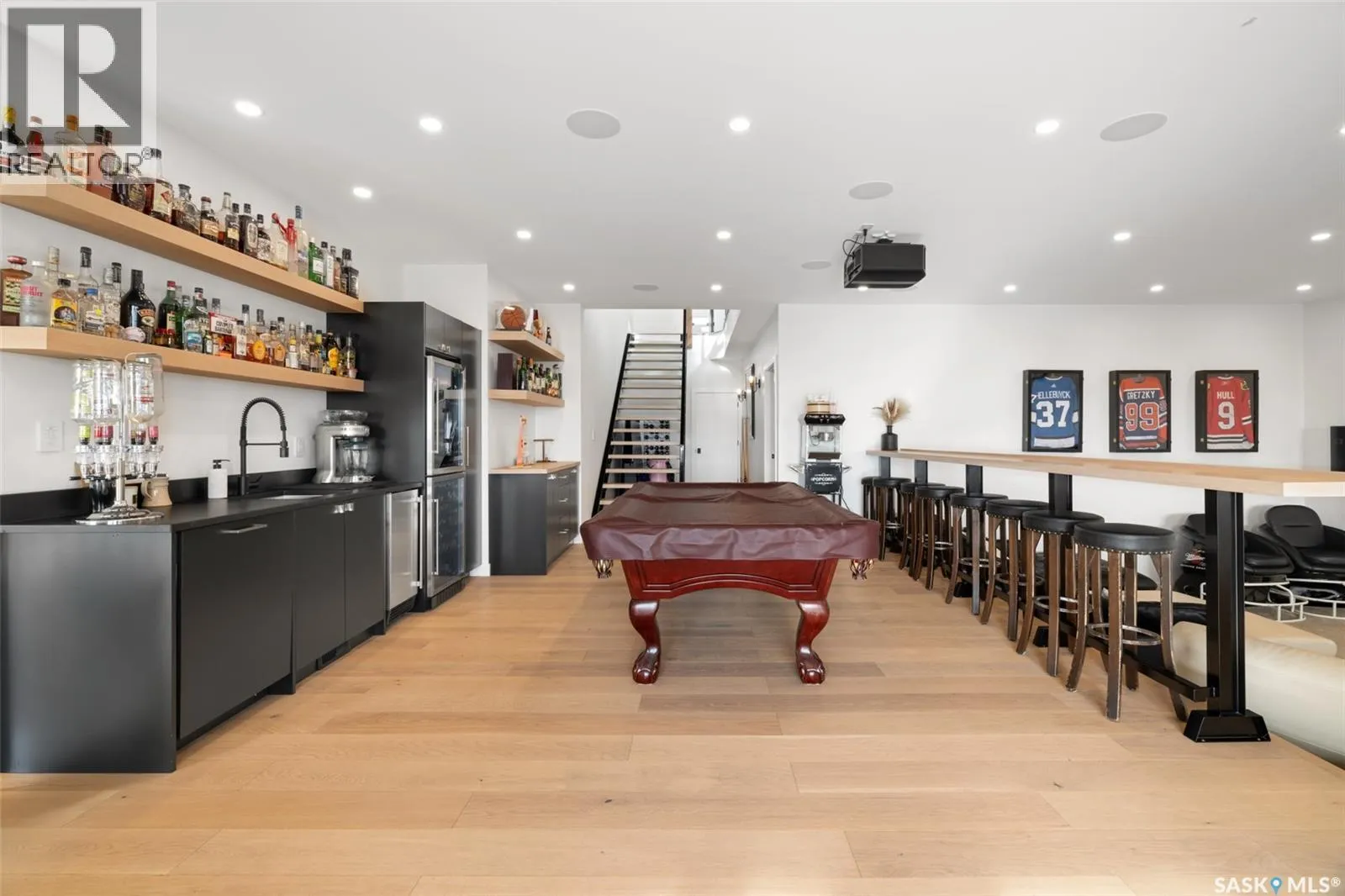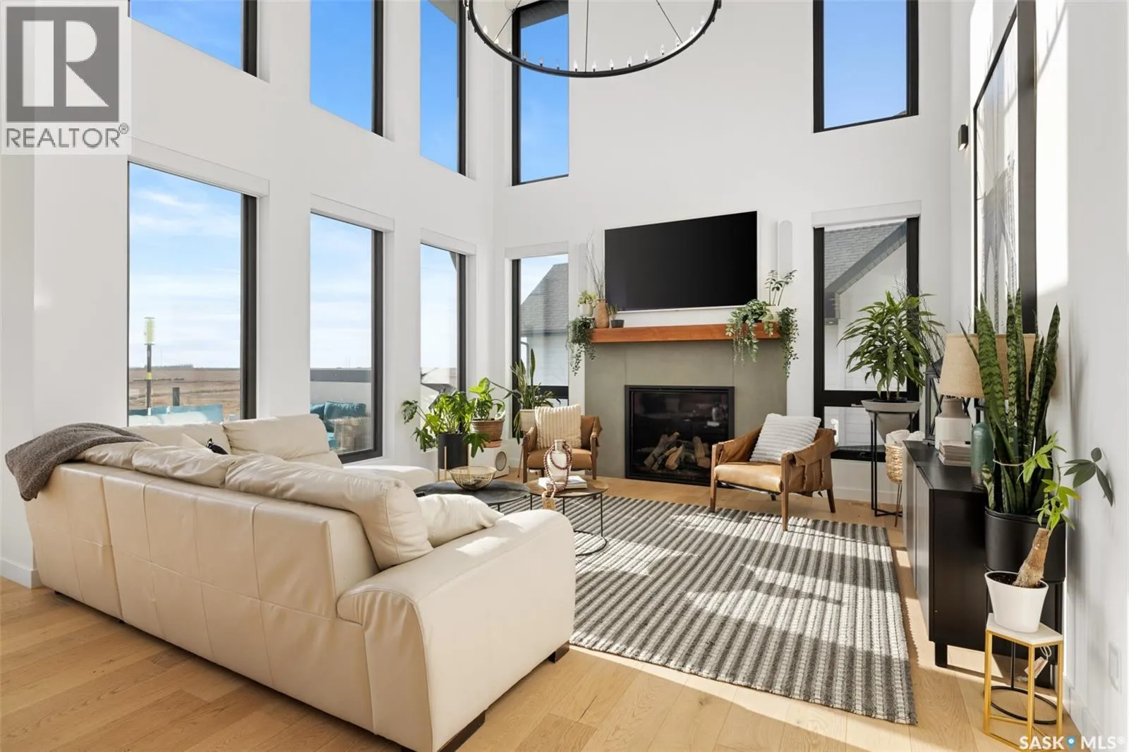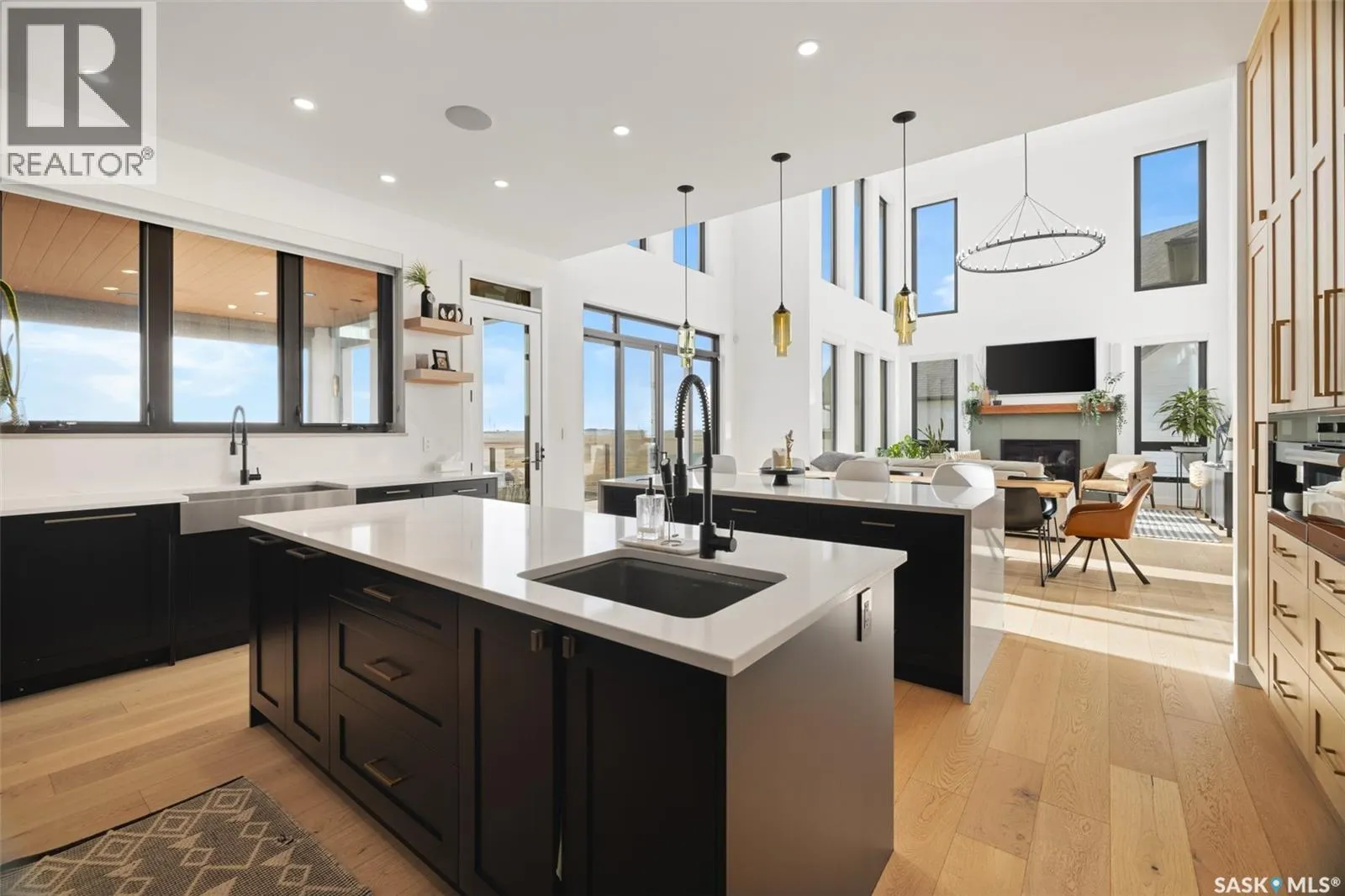 Stunning full custom home that must be seen to be appreciated. From the moment you walk in, the quality of finishes and thoughtfulness of design are undeniable. The main floor delivers a breathtaking open-concept layout with soaring double-height ceilings, wide-plank white oak hardwood throughout, and a wall of black-framed windows flooding the space with natural light. The chef’s kitchen features