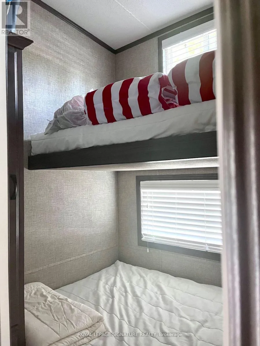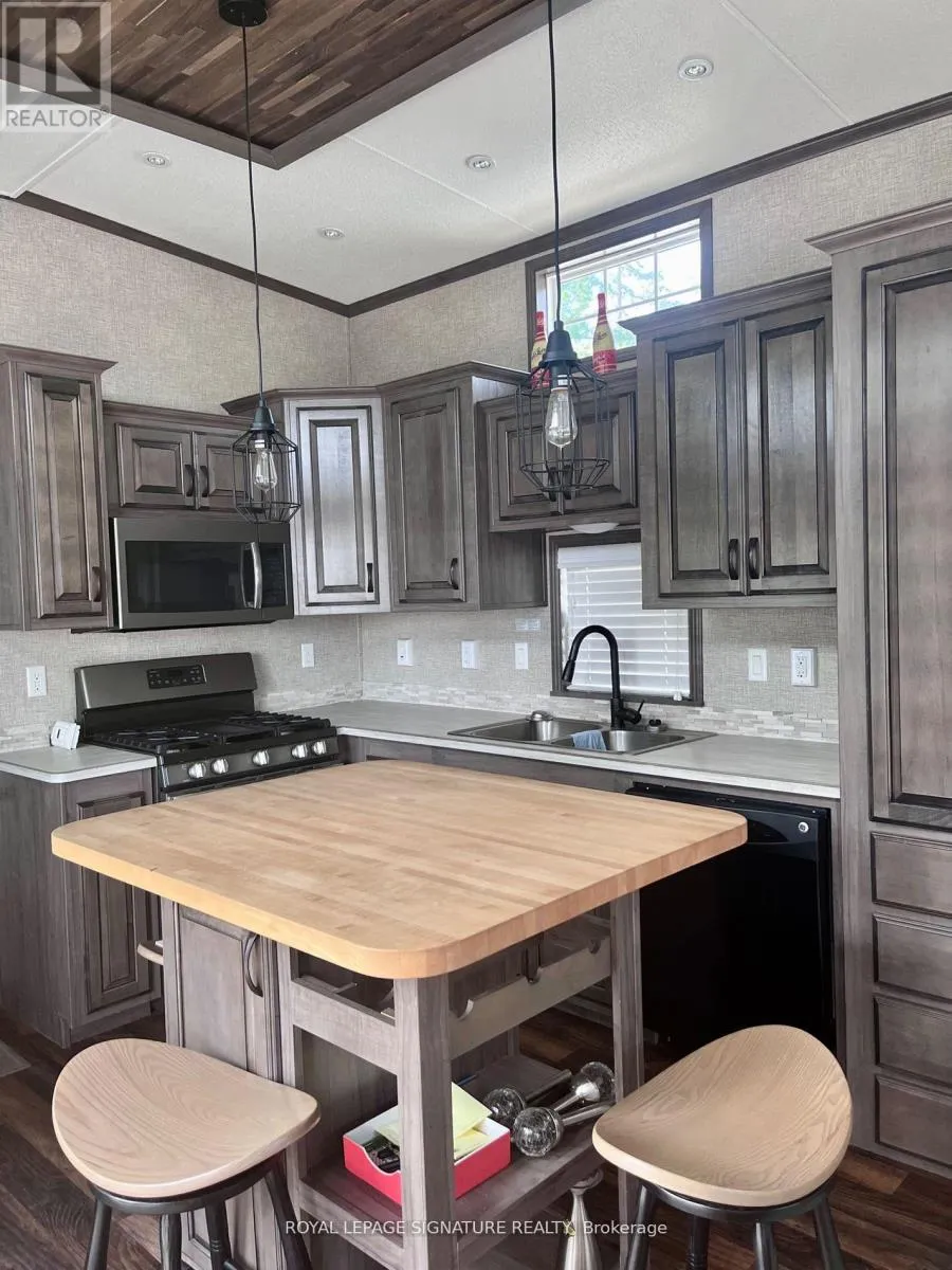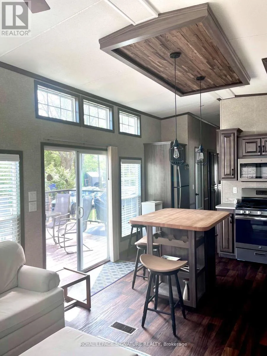 KICK-BACK & RELAX AT AMENITY -RICH “NESTLE IN” RESORT ALONG EMILY CREEK- Discover an affordable way to enjoy the Summer Season with this 2018 Frontier modular unit by KROPF CANADIAN gives you 540 sq ft of open concept living featuring vaulted ceilings and tons of light with oversized windows. This unit comes fully furnished & is bright & spacious, modern