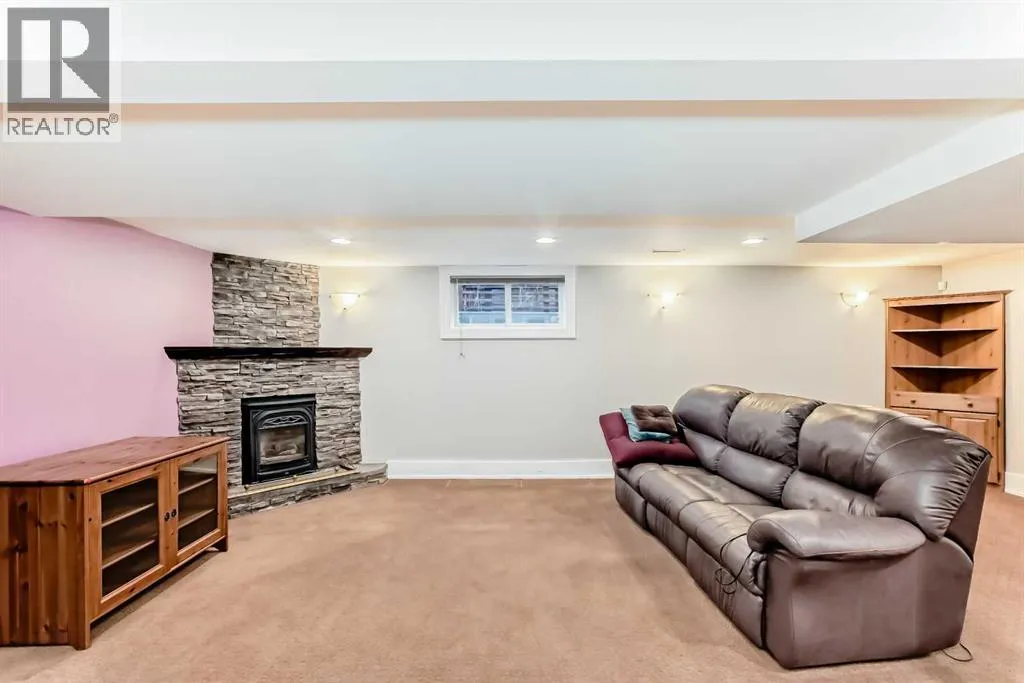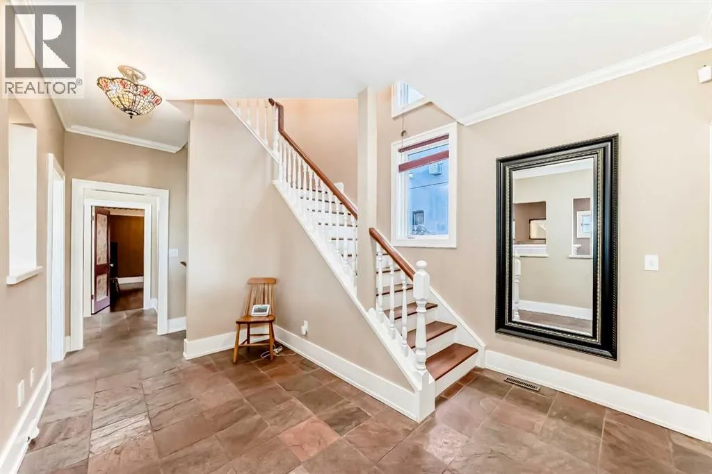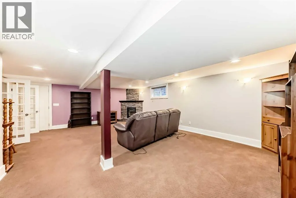all the amenities. There have been extensive renovations over the years and it is totally ready to move right in. The traditional floor plan features a formal living and dining room plus a huge kitchen with a eating nook, main floor den with a separate entrance and hardwood and tile floors all throuhout. The upper level has an awesome master bedroom complete with 5 piece ensuite C/W with steam shower and a walk in closet , two more Large bedrooms one of which has a Murphy bed built in, 4 piece bath and separate laundry plus it has hardwood floors all through out. There are many large windows in this home and plenty of skylights which makes for a very bright home. Central air in the Upper level as well.The lower level is a real gem, wide open family room with fireplace and a wet bar. large bedroom with a Murphy bed built in plus a separate flex room and bathroom. Another interesting feature is the cold room, great for storage, wine room, etc. The kitchen is a real treat in this home, it is huge with beautiful cabinetry, granite counters, tile floors and upgraded appliances, pantry, separate breakfast nook and a huge window looking into the well landscaped back yard which features many perennials and rain barrels everywhere. Check out the large deck off the kitchen and also the welcoming front porch.The garage is 24 feet wide with power and a high ceiling. Some of the many recent upgrades include newer HE furnaces, newer hail resistant shingles, Solar panels to cut down on electricity bills, electric fireplaces in living room and lower level. This is a beautiful family home and has one of the largest lots in the area which is a real bonus.. Kensington is one of the most highl y sought after neighbourhoods in the city, it is also one of the most walkable communities that you will find. Walk to shops, restaurants, schools, parks, pool, transit, banks, easy walk into downtown and to Sait, Etc. Just move in and enjoy. (id:62650)