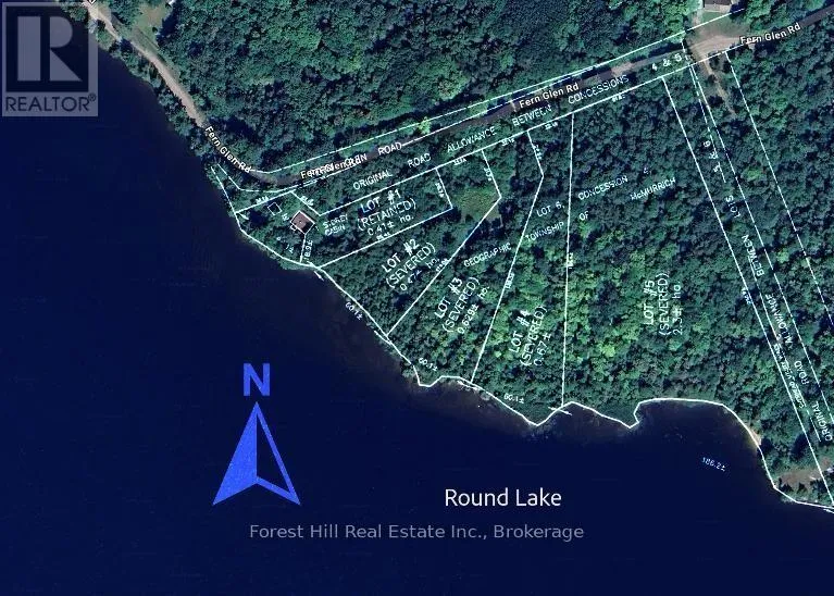 Over Five acres, facing South with over 600 feet lake frontage!!! have a look at this newly created Round Lake building lot on Fern Glen Road with hydro and high speed internet! 610 feet on the lake is well treed with mostly hardwoods and gentle sloping lands all the way towards the lake! Round Lake is a very