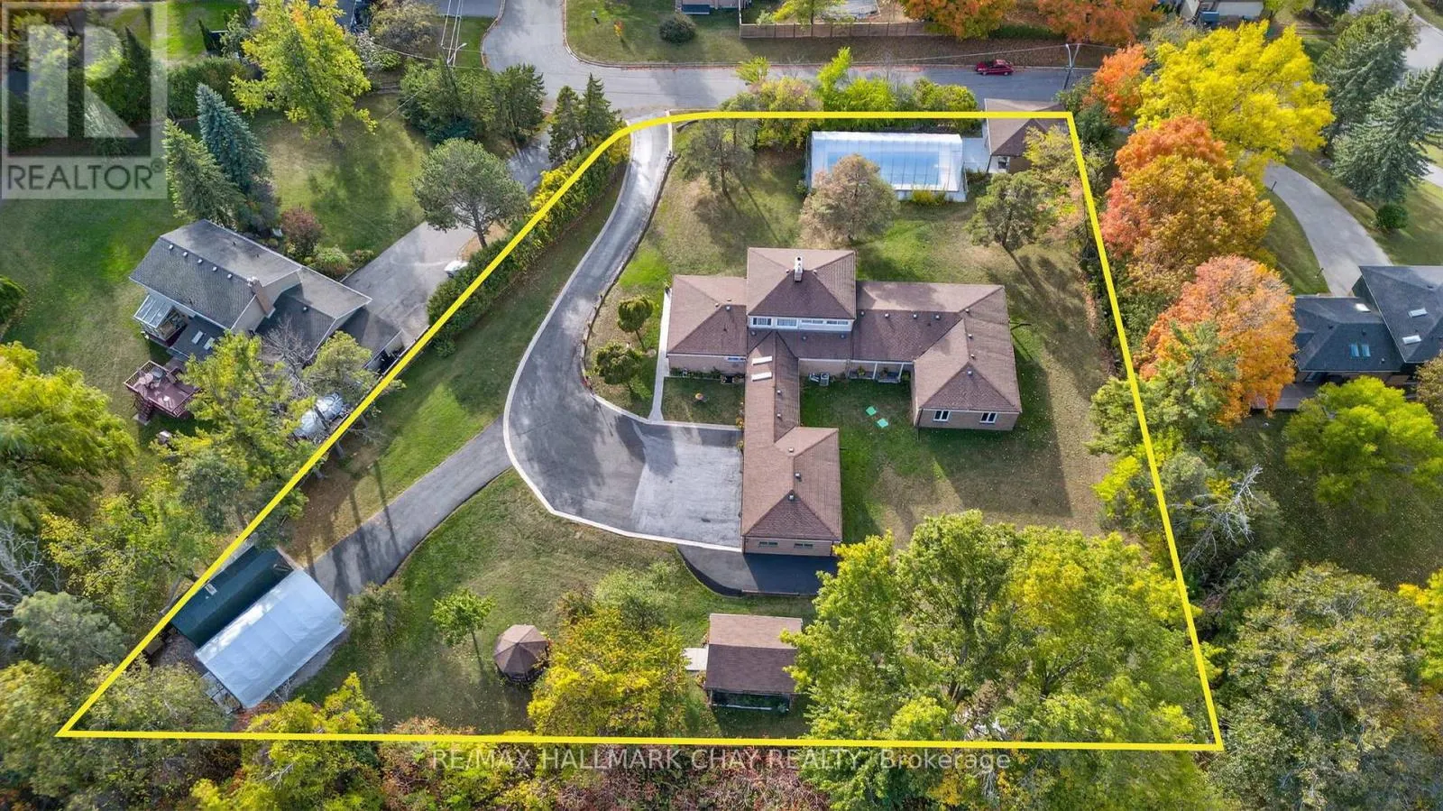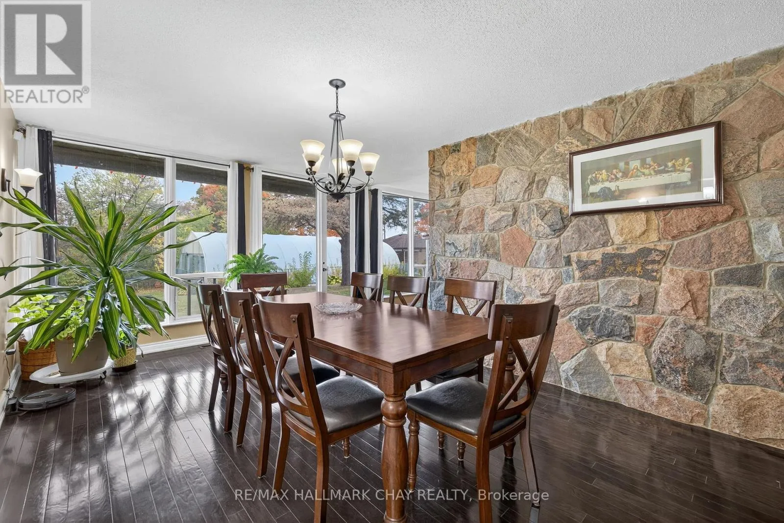 One Of A Kind Estate Home Nestled On 1.27 Acres Of Private Land With Additional 1,200 SqFt 1 Bedroom Guest house, 20 x 40 Ft Covered Inground Pool, & 600 SqFt Detached Garage With Hydro! Over 3,500+ SqFt In Main Home Features Covered Porch Leading To Living Room With Hardwood Heated Flooring, Beautiful Stone Layered Wood Fireplace, & Floor To