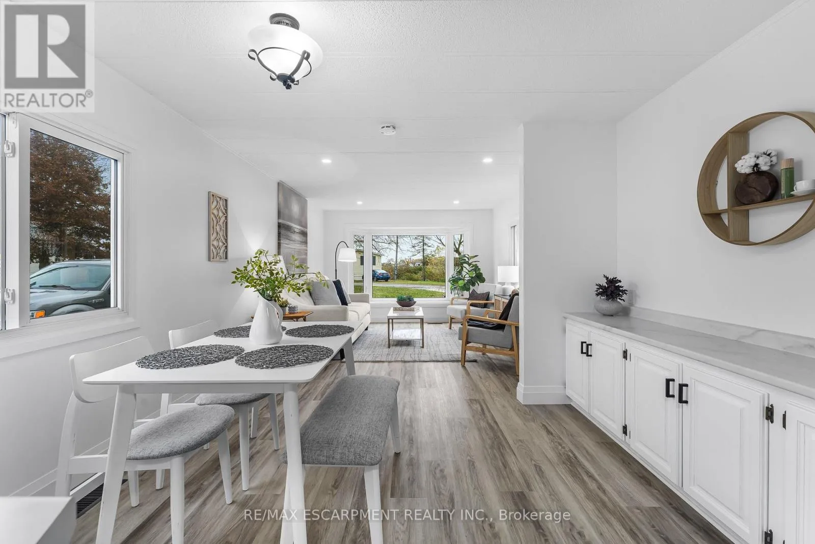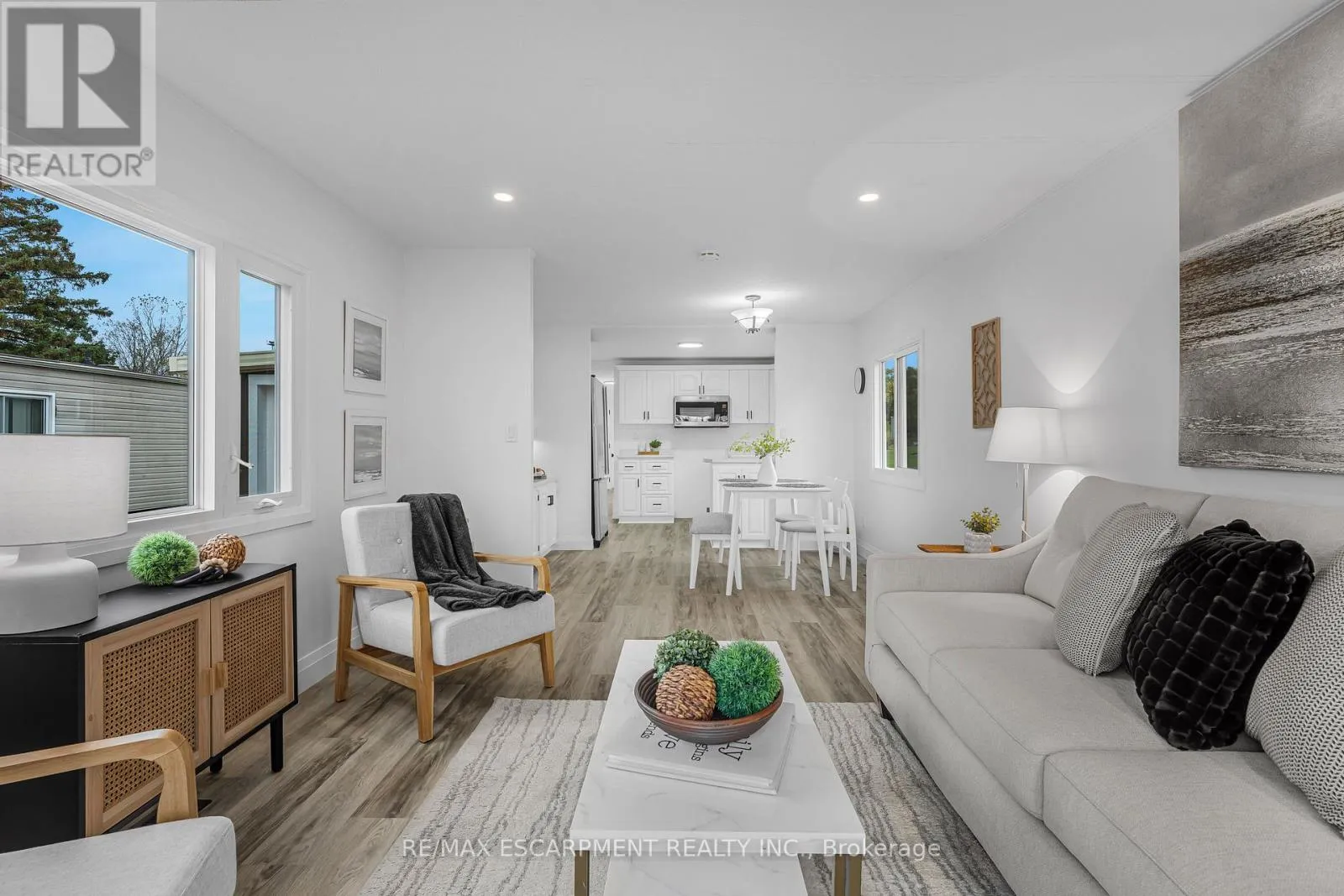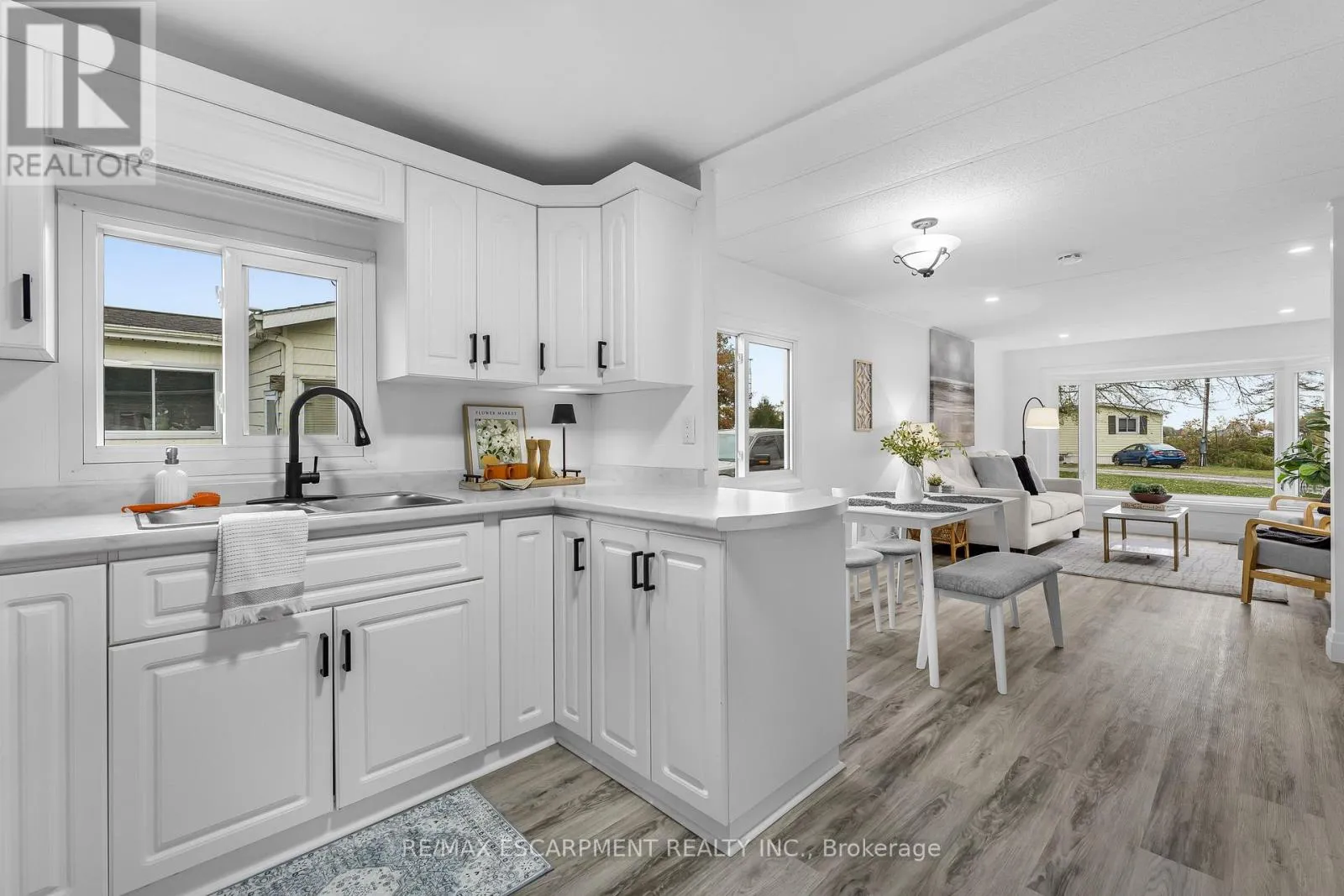 Welcome to Ellsworth Acres Mobile Home Community in Wainfleet! This beautifully updated mobile home has been extensively renovated and is move-in ready. The spacious, modern kitchen boasts stainless steel appliances, stylish flooring, new drywall with vapor barrier, and sleek pot lighting. The open-concept kitchen, living, and dining area is bright and inviting, featuring large vinyl/thermal windows and a charming coffee