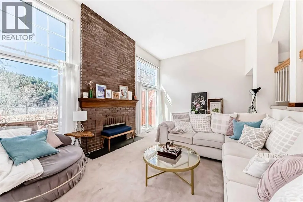 filters down, inviting you to step up into a stunning living area with soaring ceilings and full-height windows showcasing panoramic riverside scenery. The brick hearth from the original wood-burning fireplace extends all the way up as well, a gorgeous focal point in the light and airy room, while sliding glass doors segue into outdoor living. Wall cutouts and open railings connect the four-level split layout and the amazing views as you move up into the dining room. Noticeable updates in the kitchen include lighting and some appliances, and the windows in the home are newer as well. Oak cabinetry is timeless – you could easily refresh the look of the entire space with a flooring or countertop change. The breakfast nook enjoys morning sun, perfect for a cup of coffee before you start the day. A half bath on this level is convenient and cute as-is, or you might choose to infuse your personal taste with a simple remodel. Upstairs, you will notice a similar theme. Every inch of this home is immaculate, with neutral finishes that will work with any décor, or bring in your own aesthetic to make it truly your own. Spacious and bright, the primary bedroom includes a walk-through closet, and a four-piece ensuite with a vintage alcove shower has a unique charm. Two more bedrooms provide plenty of space for guests, a family, or offices. A well-appointed main bath completes this level. In the basement, you will find a laundry area as well as a huge utility room with tons of extra storage space. Outside, the brick patio feels like a private oasis, looking over the green space and river shore line. Garden beds thrive in the sunny exposure, and amazing sunsets paint the perfect backdrop for evening gatherings. This area is picturesque and parklike, with the Bow River Pathway just steps from your door offering hours of activities, whether you walk, run, or visit nearby outdoor fitness parks and off leash areas. Cycle commuters can be downtown in close to the same time as the short trip takes by car. This community attracts active professionals, and the neighbourhood is well-resourced, with the Riverside Club providing fitness and wellness facilities and the iconic Riverside Spa. Foothills and the Children’s hospitals are both nearby, as is the University of Calgary. Local residents enjoy several hidden gem restaurants, like the Lazy Loaf and Kettle, Nove Nine Diner, and LICS Ice Cream. A short drive (or bike ride) puts one of Calgary’s hottest food districts in easy reach, or you can be headed west into the mountains with only a few minutes’ drive in the other direction. See this one today! (id:62650)