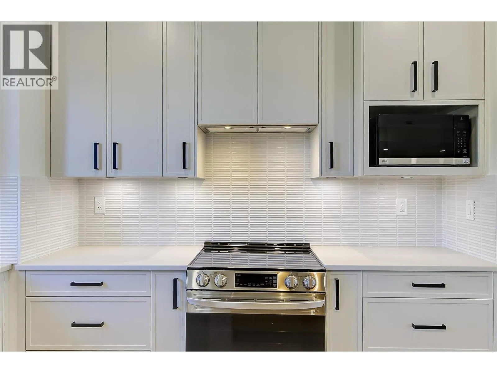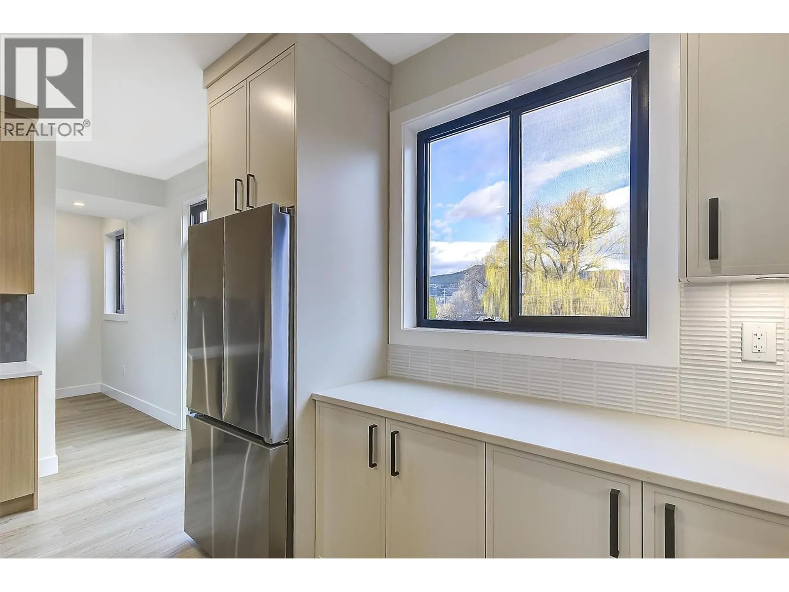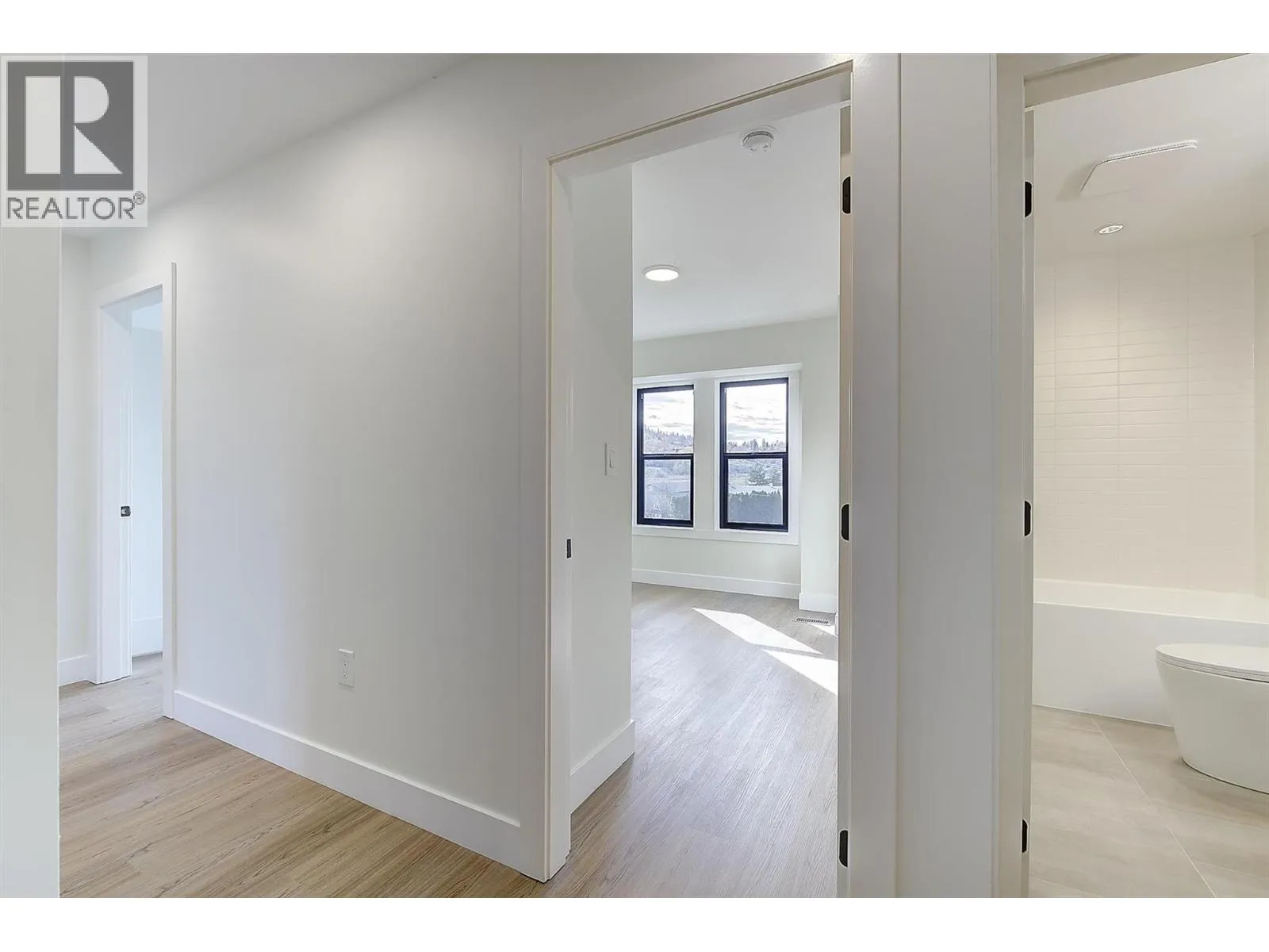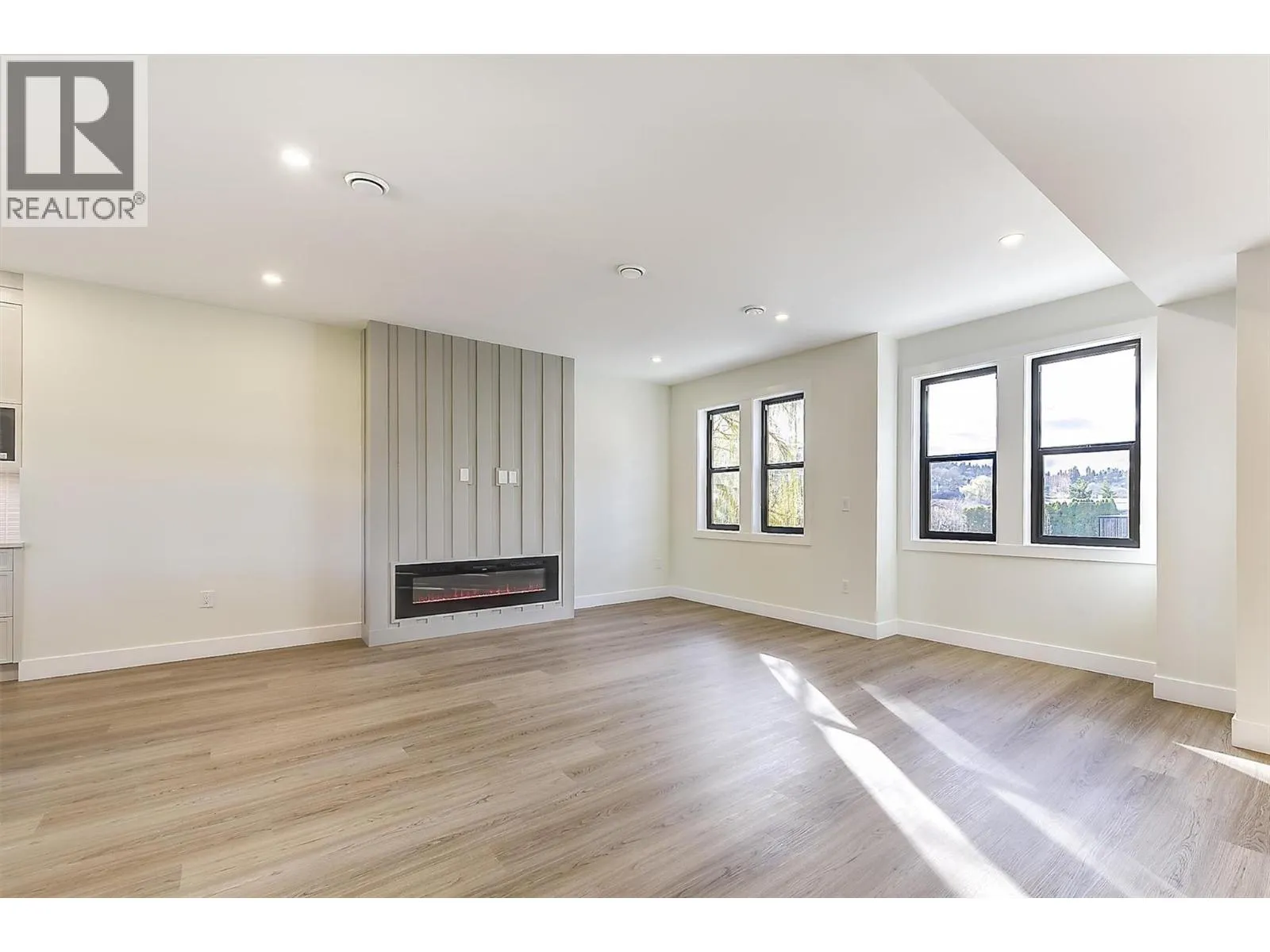 Discover these boutique townhomes tucked away in a quiet, private setting in the flats of Lake Country. End Unit. Located on a no-through road surrounded by farms and acreages, rural charm and an Okanagan lifestyle await. Just down the street, access the famous Okanagan Rail Trail and Wood Lake. Inside, the sun-filled open-concept living space is framed by oversized black-trim