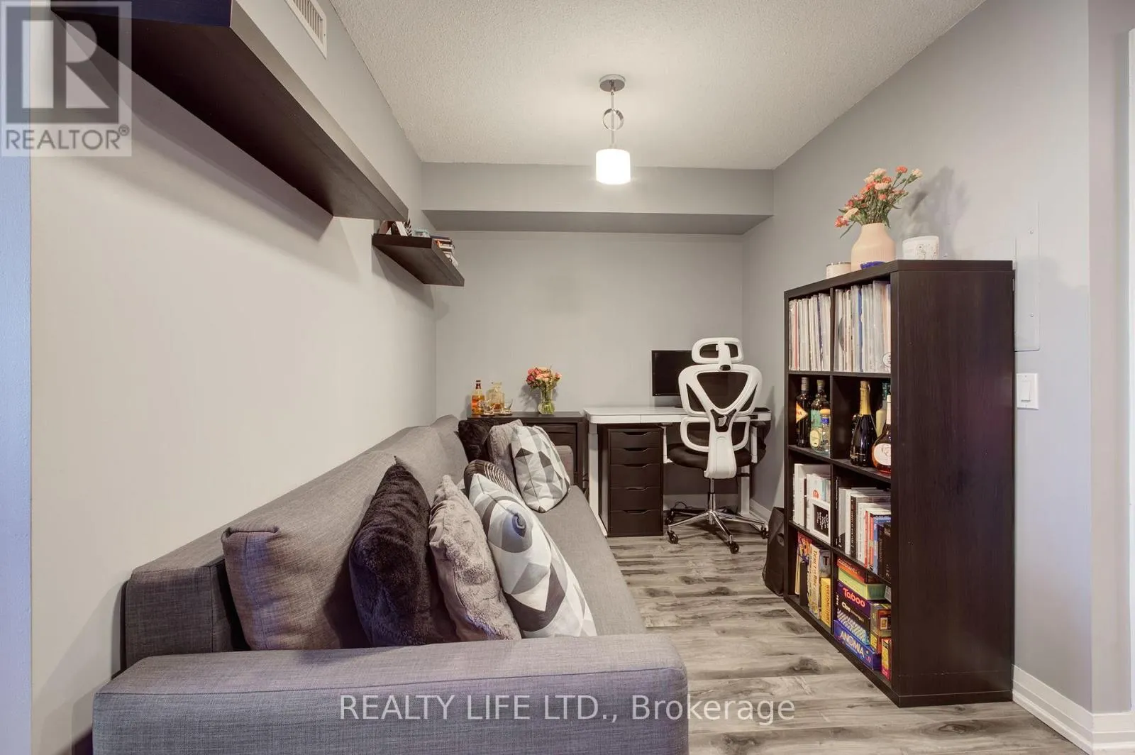 Desirable Valhalla Condos. Luxury 1 Bedroom + Den Condo With Large Balcony! Bright Open Concept Layout. 1 Parking Space. Modern Kitchen With Quartz Counter, Breakfast Bar, Ceramic Backsplash and Stainless Steel Appliances Including Slide In Range. Updates In 2019 Include Quartz Counter, Kitchen Sink, Replaced Cabinet Doors In Kitchen, Replaced Cabinet Doors In Bathroom and Laminate Flooring. Spacious Primary Bedroom