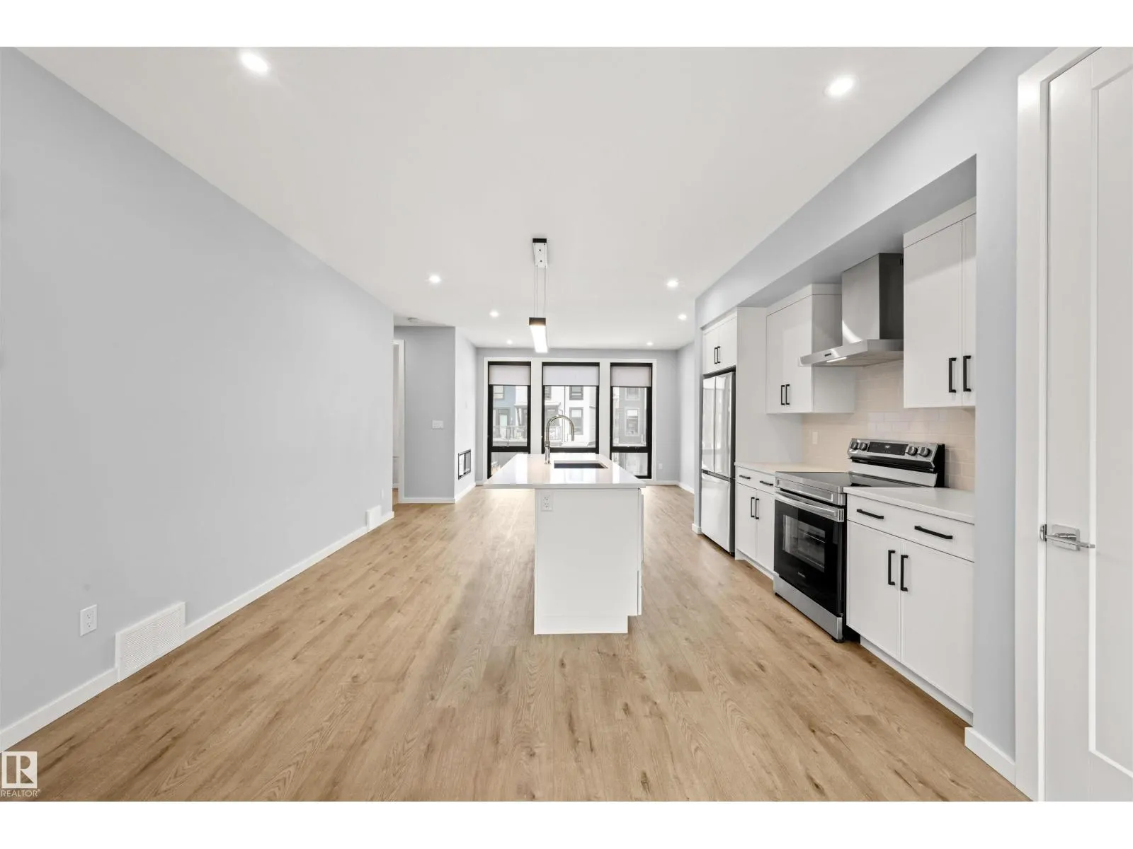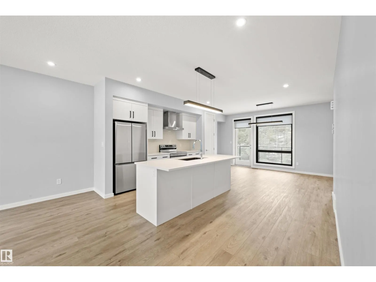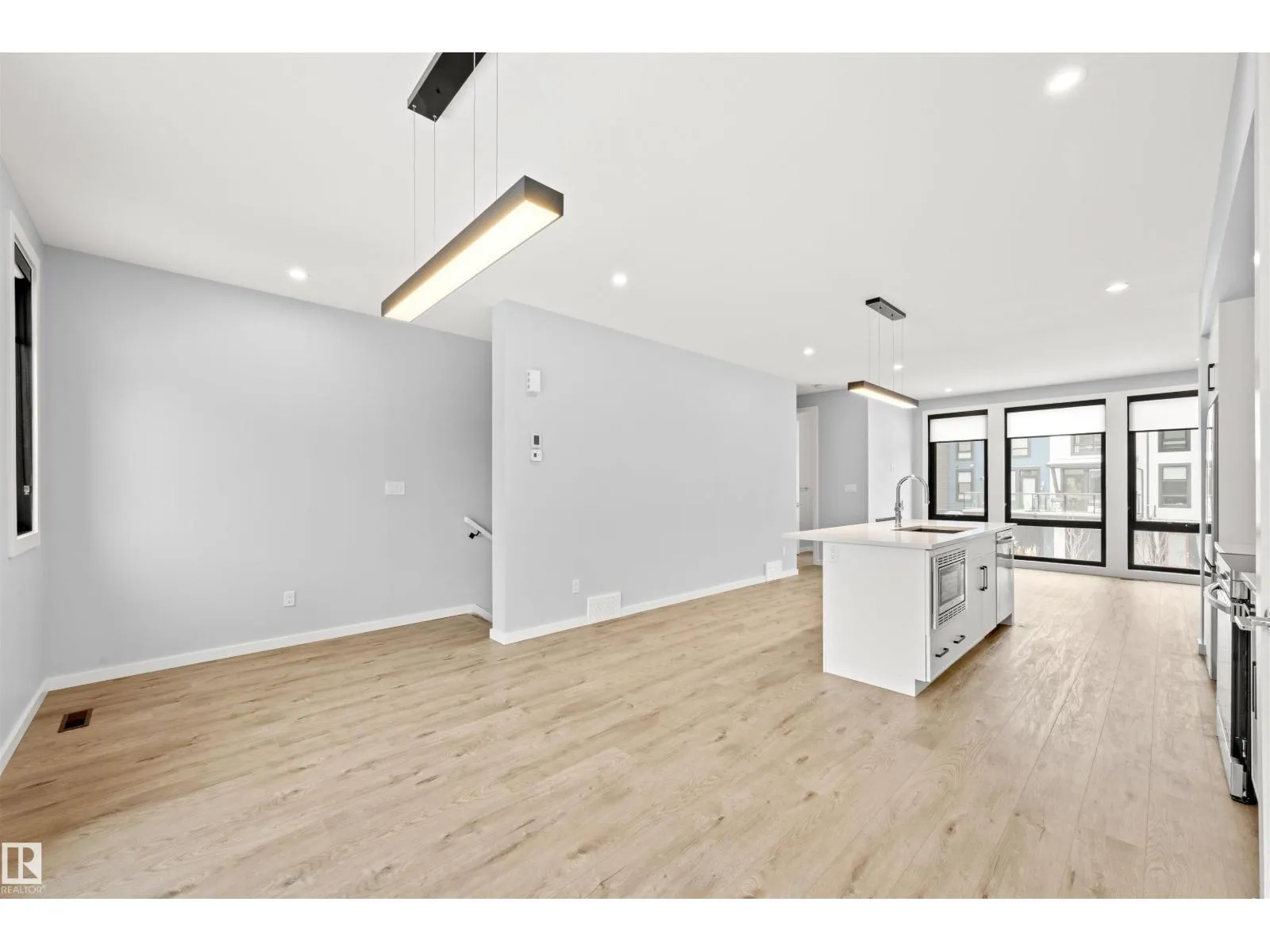 Welcome to Pivot, Averton’s award-winning townhouse community. This beautifully designed 2-bedroom, 1628 sq ft residence offers a seamless blend of style and function. The main floor features a spacious kitchen anchored by a large island with quartz countertops, a dedicated dining area, and an inviting living room framed by floor-to-ceiling windows that fill the space with natural light and a