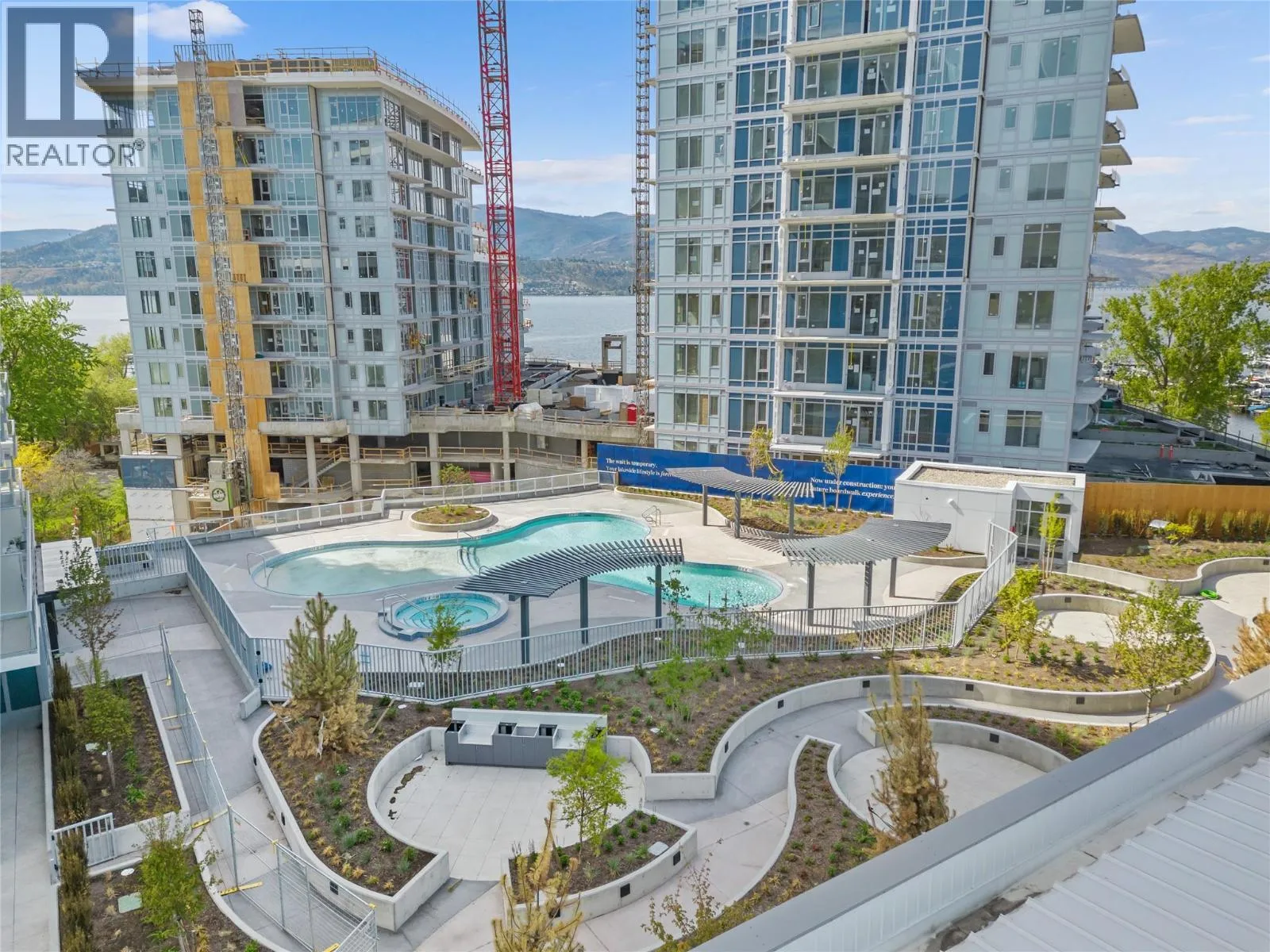 Discover resort-style living at Aqua Waterfront Resort, perfectly positioned in Kelowna’s sought-after Lower Mission just steps from the lake. This 2-bedroom, 2-bathroom 13th-floor unit features 1,057sq. ft. of thoughtfully designed space with expansive windows, high ceilings, and a bright open-concept layout. A split-bedroom design provides ideal privacy, while the northwest-facing covered balcony captures lake, city, and mountain views. The modern