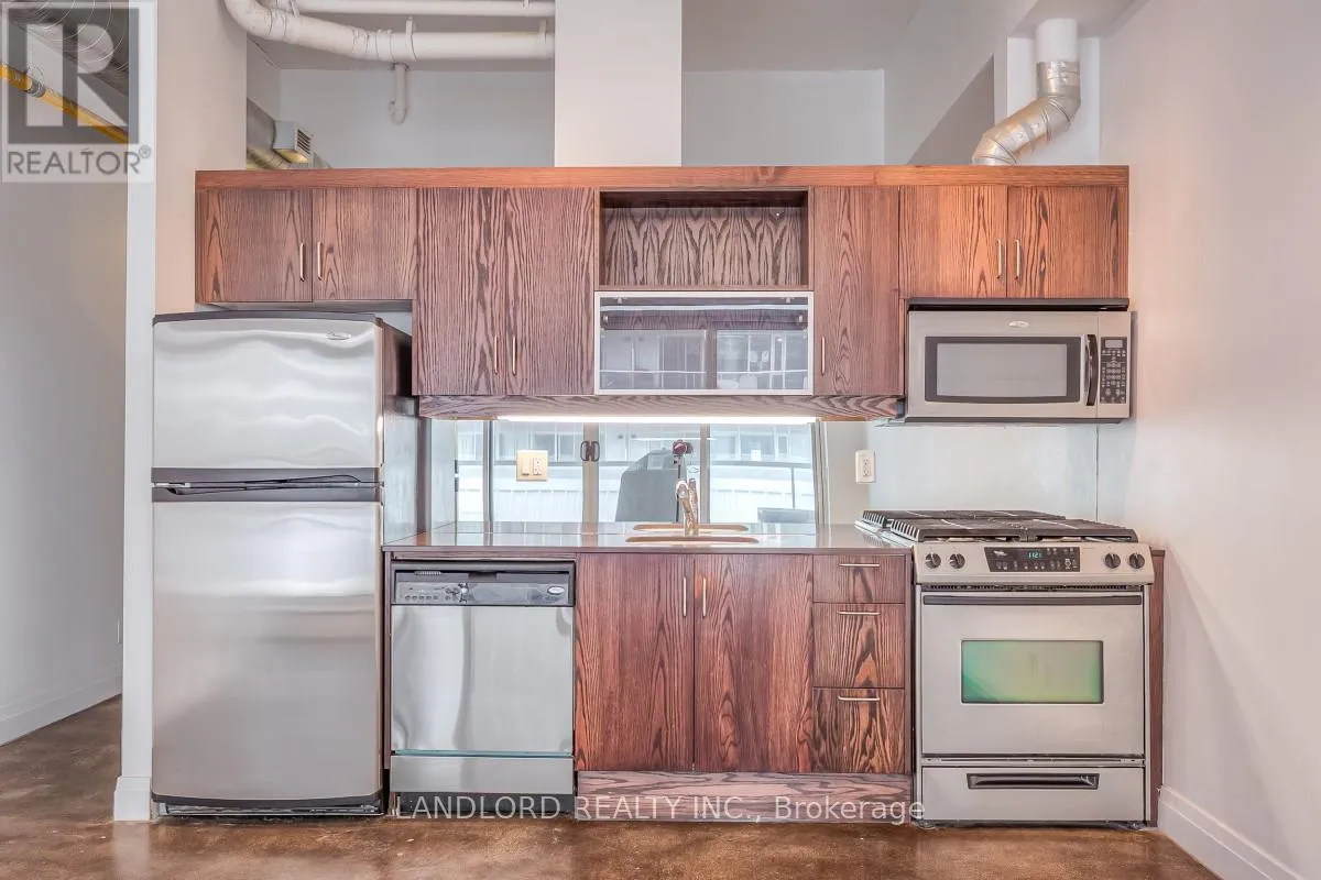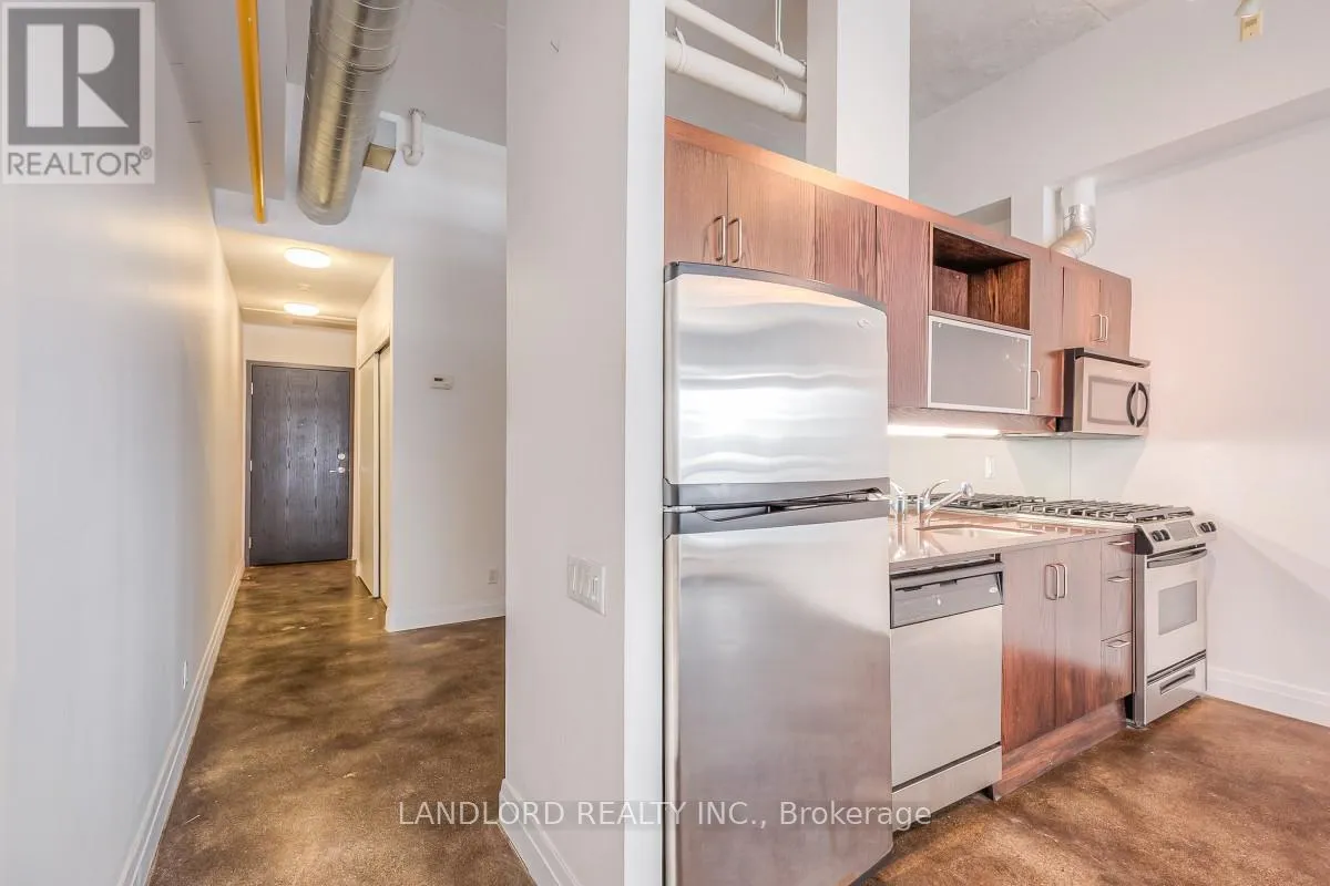 Authentic Loft Conversion At The Garment Factory And A Rare Find In Leslieville. Approx. 600 Square Feet, One Bedroom With 13′ Ceilings, Polished Concrete Floors And 78 Sq. Ft. Terrace With Gas Line For Bbq, Gas Stove In Kitchen, Brand New State Of The Art On Demand Hot Water System Complete This Very Cool Space. A Block From Queen St.
