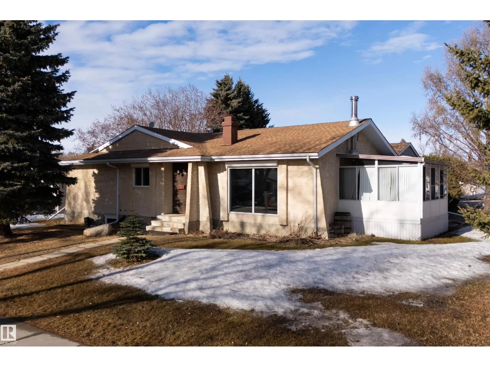 Charming 4-bedroom bungalow on a quiet, west-facing corner lot offering incredible potential. Located across from a park, this home features great bones and endless possibilities. The main floor includes a bright living room with a cozy wood-burning fireplace, while the primary bedroom offers a convenient 2pc ensuite. The fully finished basement adds valuable living space and includes a sauna; perfect
