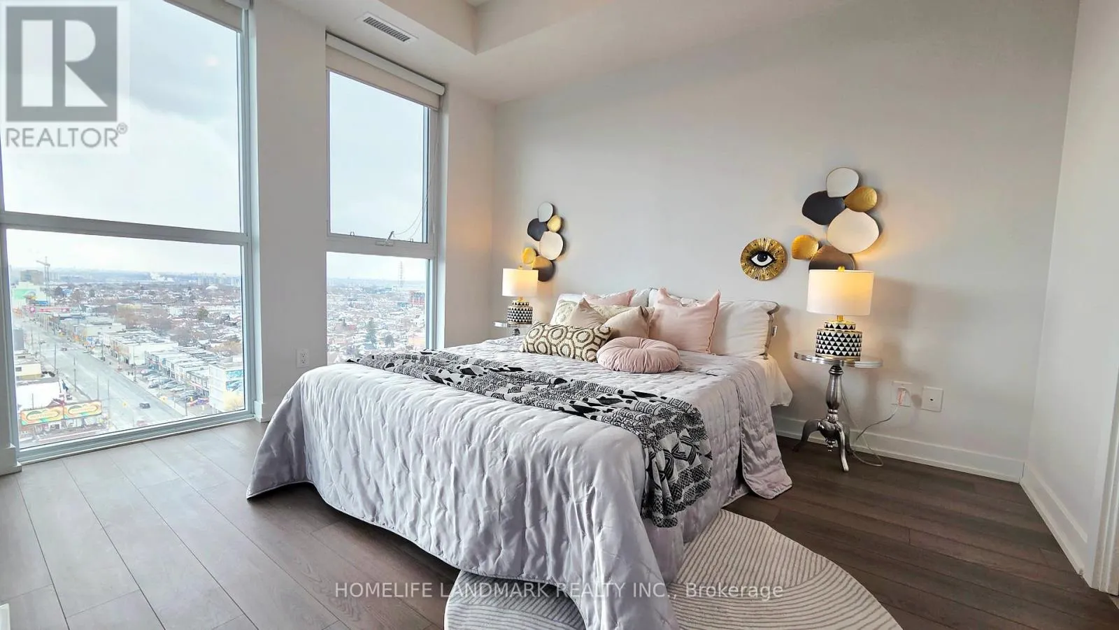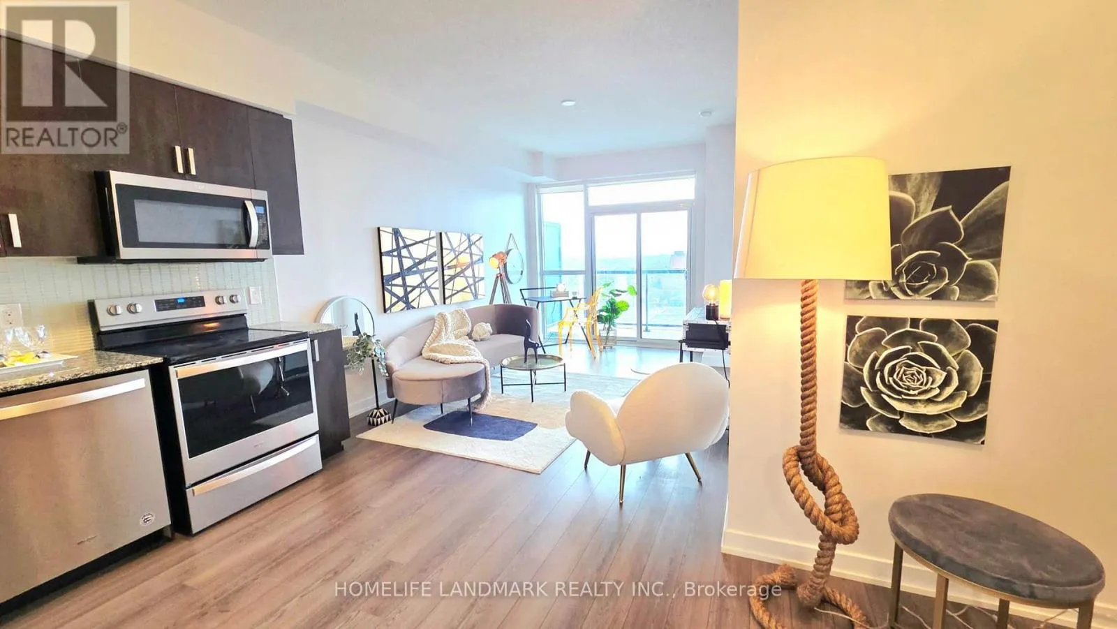 Welcome To This Beautiful And Spacious One Bedroom Plus Den Suite At Midtown Condos By Empire Communities. Featuring 9-Foot Ceilings And Laminate Flooring Throughout, This Unit Offers Two Full Bathrooms And Stunning Sunset Views. Kitchen Appliances With Standard Size, A Walk-in Closet, Just Steps To The Oakwood LRT Station. Enjoy Full Building Amenities Including A BBQ Area, Fully Equipped Gym,