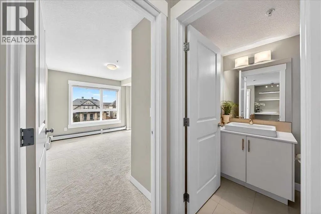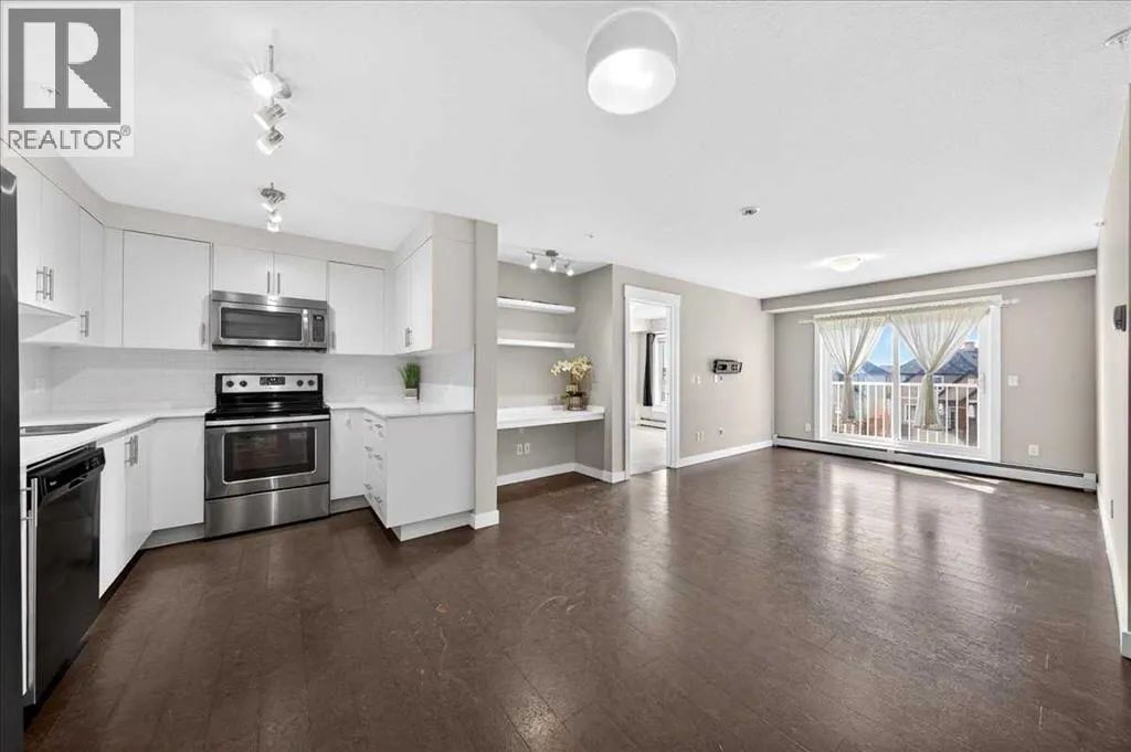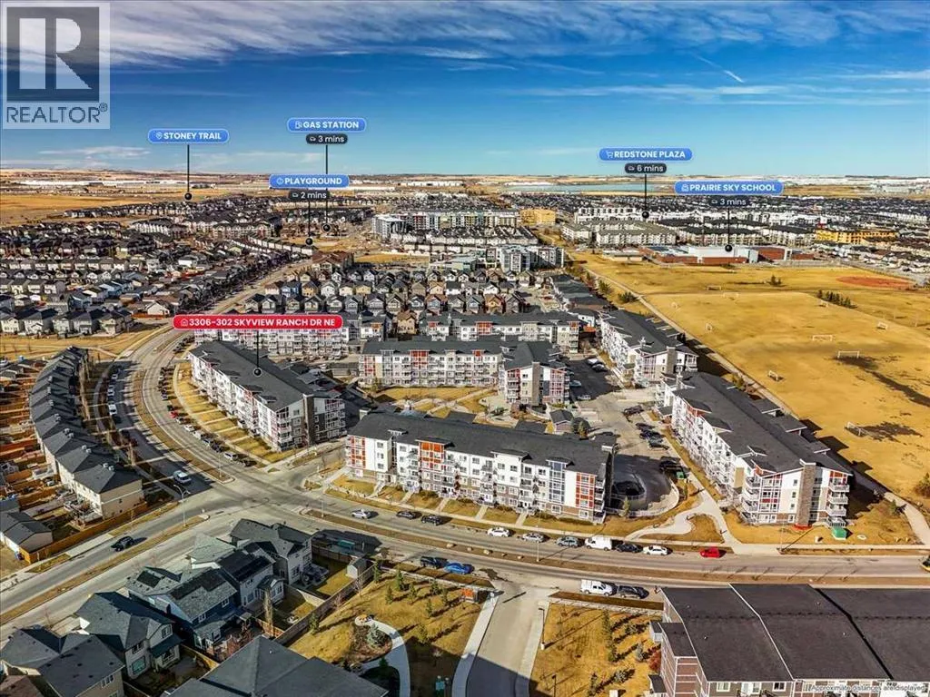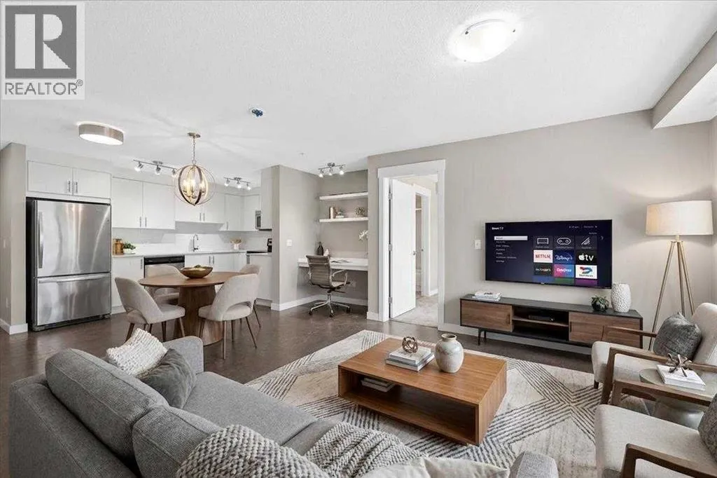 Welcome to Orchard Sky in the desirable community of Skyview Ranch! This 3rd-floor unit offers a bright, open-concept layout featuring 2 bedrooms and 2 full bathrooms and SW facing balcony with an abundance of natural lighting. A built-in study/desk area with floating shelves provides the perfect space for working from home, while the in-suite laundry room includes a stacked washer