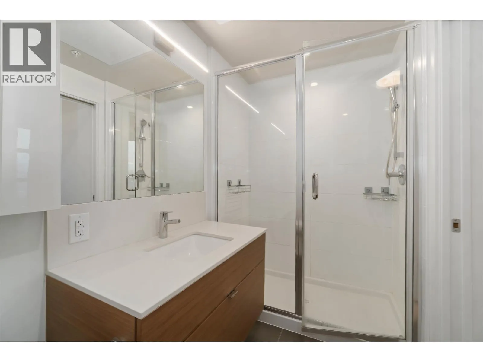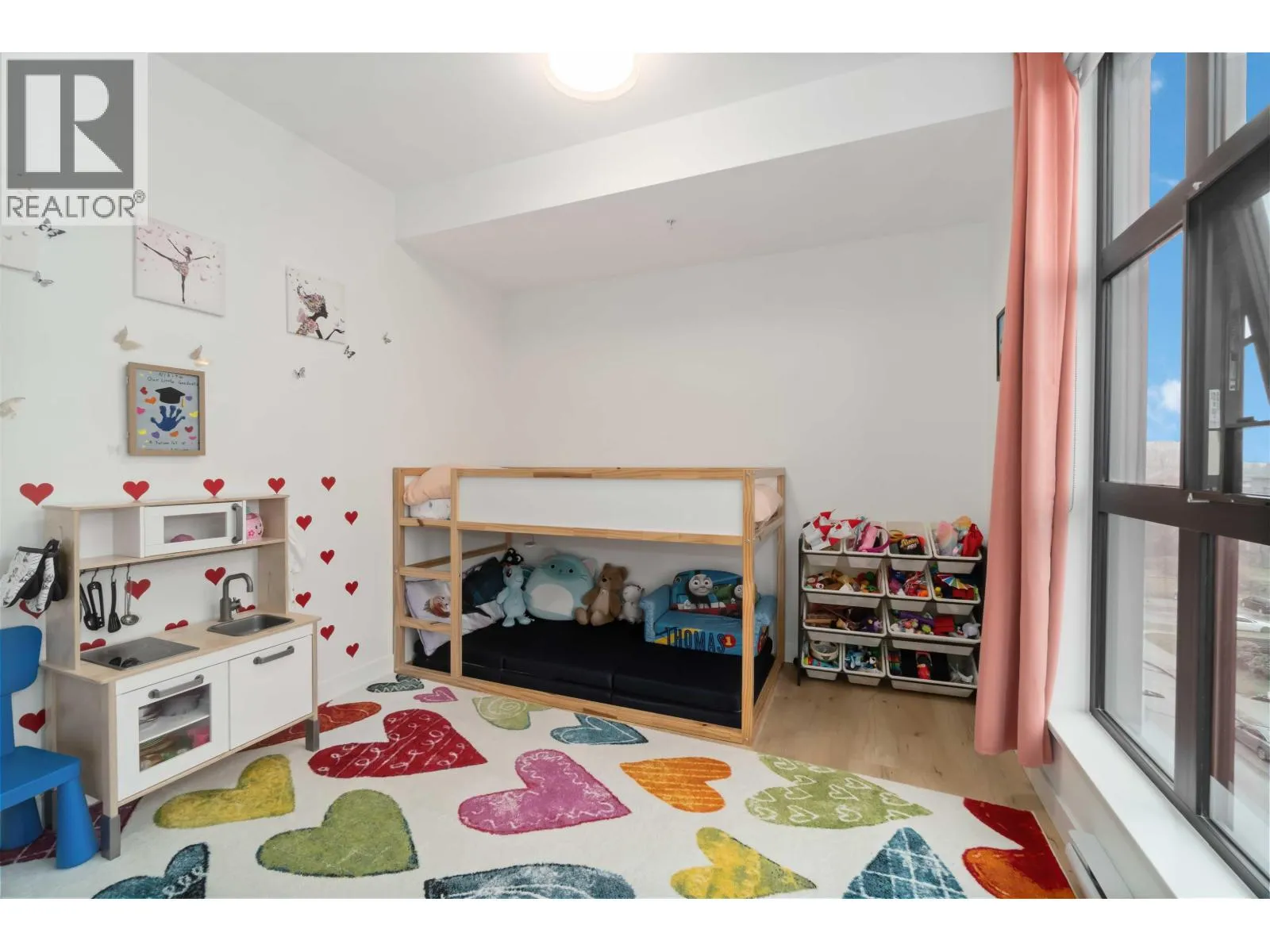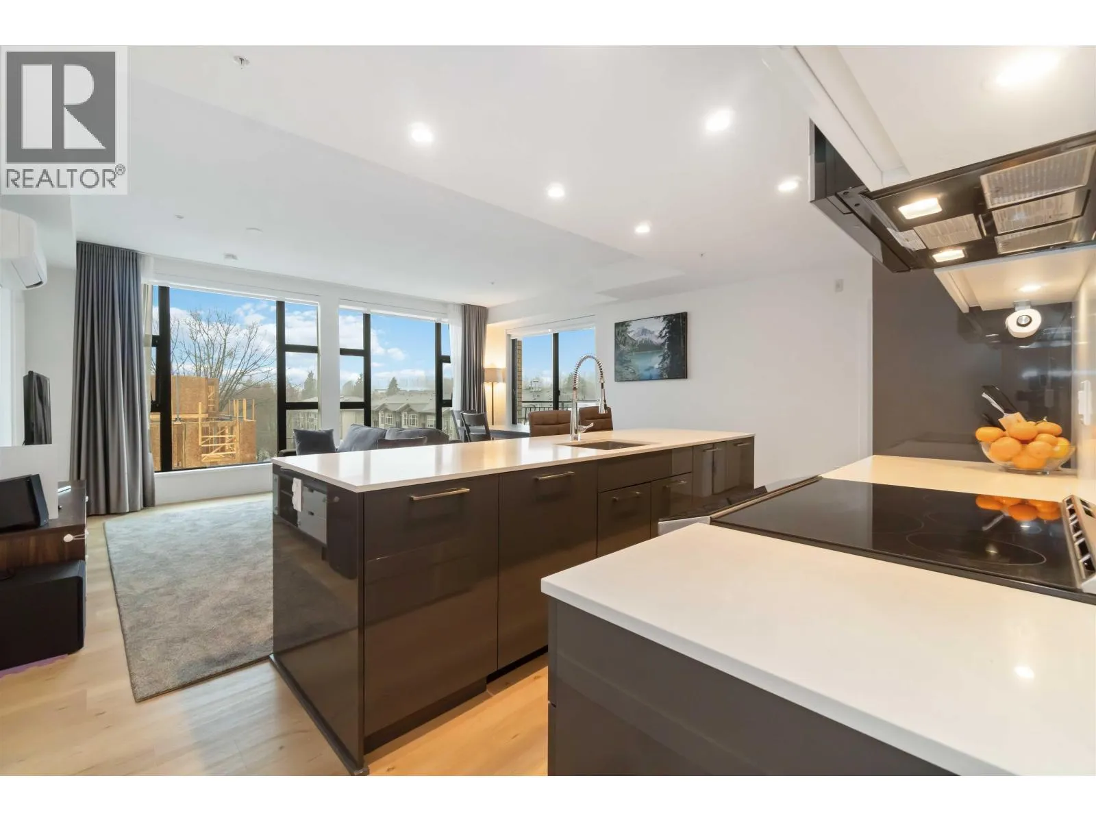 INCREDIBLE 3 BDRM, 2 BATH, NEARLY 1200 SQFT SUB-PENTHOUSE CORNER UNIT with mountain views in ONE SHAUGHNESSY, steps to shopping, transit, rec centre, and more! Bright, open living area features flr-to-ceiling windows for abundant natural light. SLEEK KITCHEN offers ample counter and cupboard space, hidden fridge and dishwasher, QUARTZ COUNTERS, and large island with breakfast bar. Primary bdrm with WI