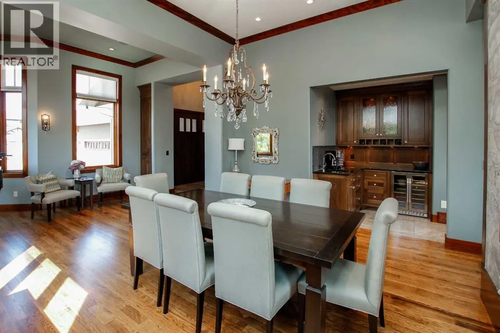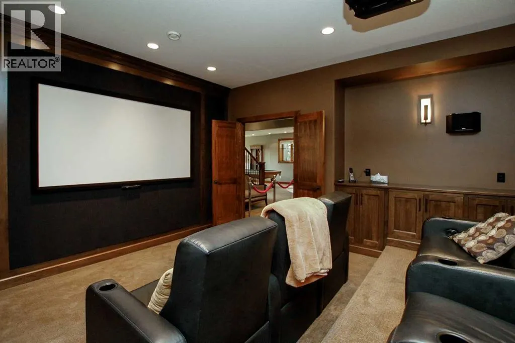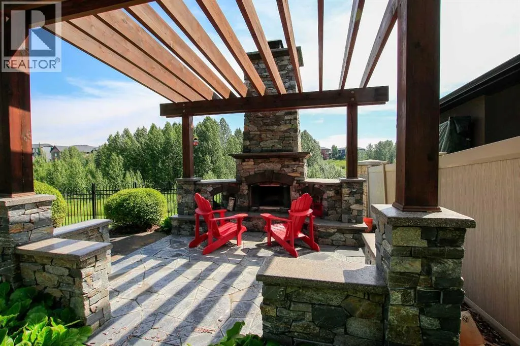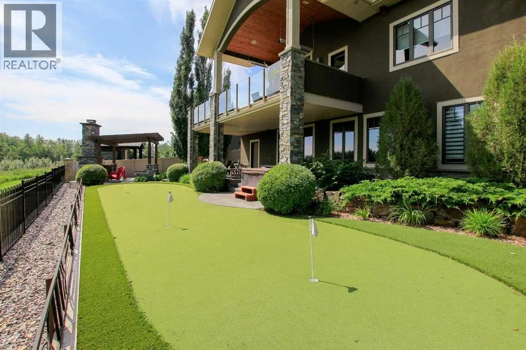~ Covered front entry leads to a grand foyer with high ceilings that open to the upper level and accented with a chandelier ~ Great room with a sitting area opens to the dining room with a gas fireplace accented with tile and stone ~ Stylish wet bar features rich wood cabinetry, stone countertops and tile backsplash ~ The living room is flooded with natural light from the abundance of large windows and has garden door access to the partially covered deck ~ Gourmet kitchen features rich wood cabinetry with crown moulding, large drawers, lighted display cabinets, a full tile backsplash, stone countertops, oversized island with a butcher block section and a second sink, a premium Wolf gas range & a commercial style refrigerator ~Walk in pantry with built in shelving ~ The primary bedroom can easily accommodate a king size bed with room for a sitting area, spa like ensuite has dual sinks and a built in makeup counter, air tub, separate water closet & a steam shower ~ The walk in closet has built in shelving, dressers, & a bench with access to the laundry room w/built in cabinets, a folding counter, sink and sewing desk ~ Mudroom has more built in cabinets, large closets, & access to the triple attached garage (heated & fully finished) ~ Open staircase leads to the library with built in bookcases & an adjoining wet bar with built in cabinets, stone countertops ~ 2nd bedroom has a walk in closet and is located next to a 4 piece bath ~ Bonus room has vaulted ceilings, rows of recessed lighting, built in cabinets and a walk in storage closet ~ The bright and spacious walkout level is highlighted by a large recreation room with a wet bar featuring rich cabinetry, stone counters & a wine cellar, that opens to a sitting area with stone and wood details ~ Garden doors leading to the covered patio ~ Media room has built in cabinets and tiered seating ~ Home gym has floor to ceiling mirrors ~ 3 piece bath ~ 2 basement bedrooms have walk in closets, one has a 3 piece ensuite ~ 2nd laundry room next to bedrooms ~ The backyard oasis was professionally landscaped, has an irrigation system, putting green, gazebo and fire pit, tons of mature trees, shrubs and perennials, large storage shed, and unobstructed views ~ Convenient location close to all amenities with tons of great shopping and dining within walking distance in a one of a kind location ~ Pride of ownership is evident! (id:64429)