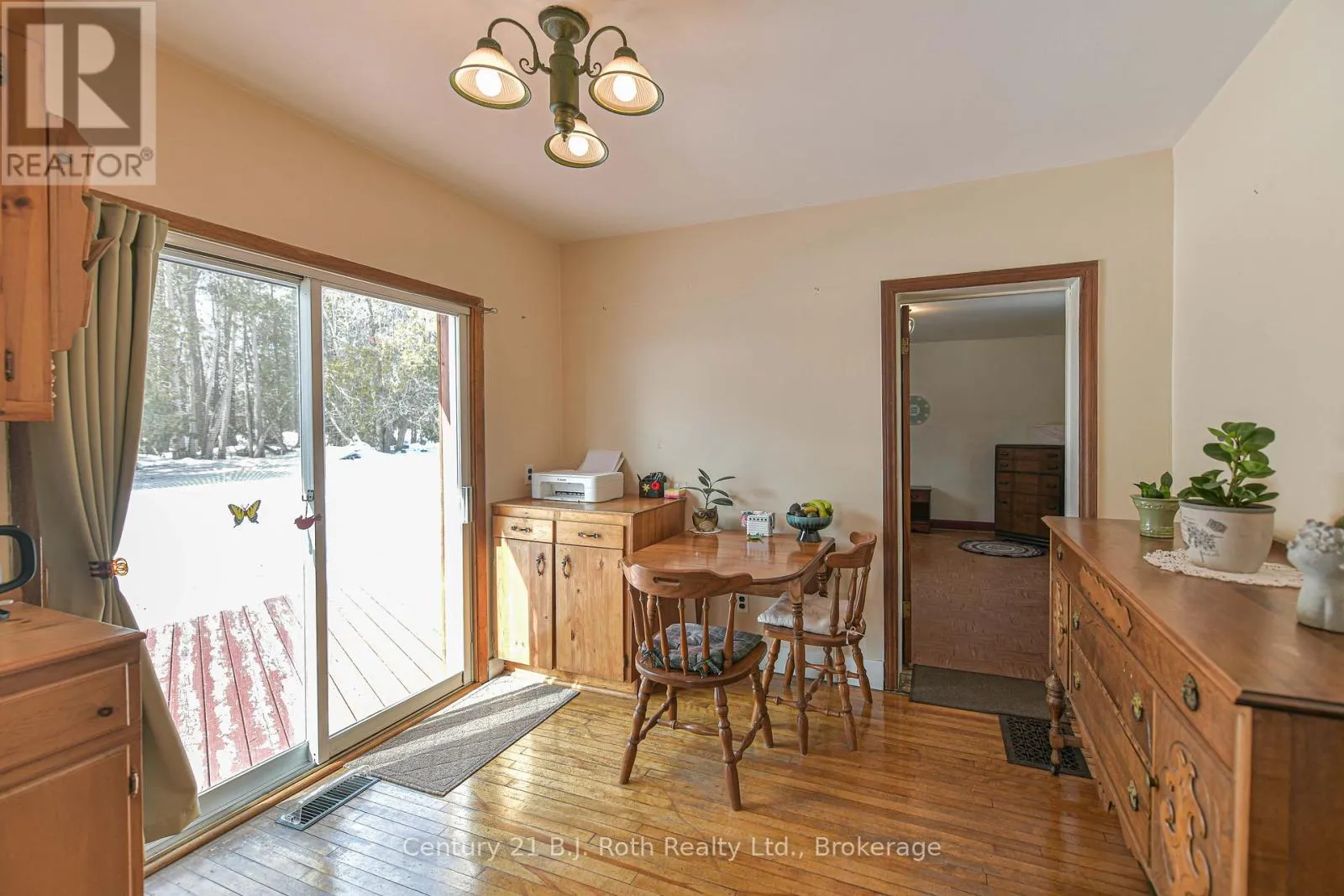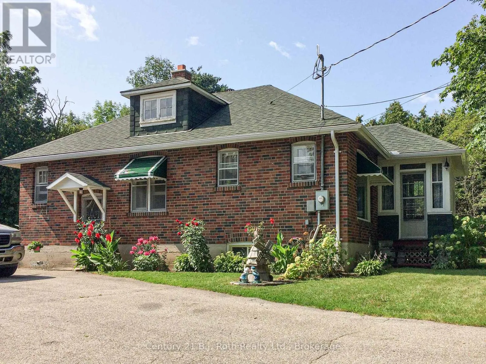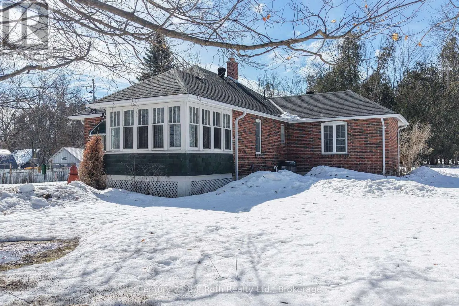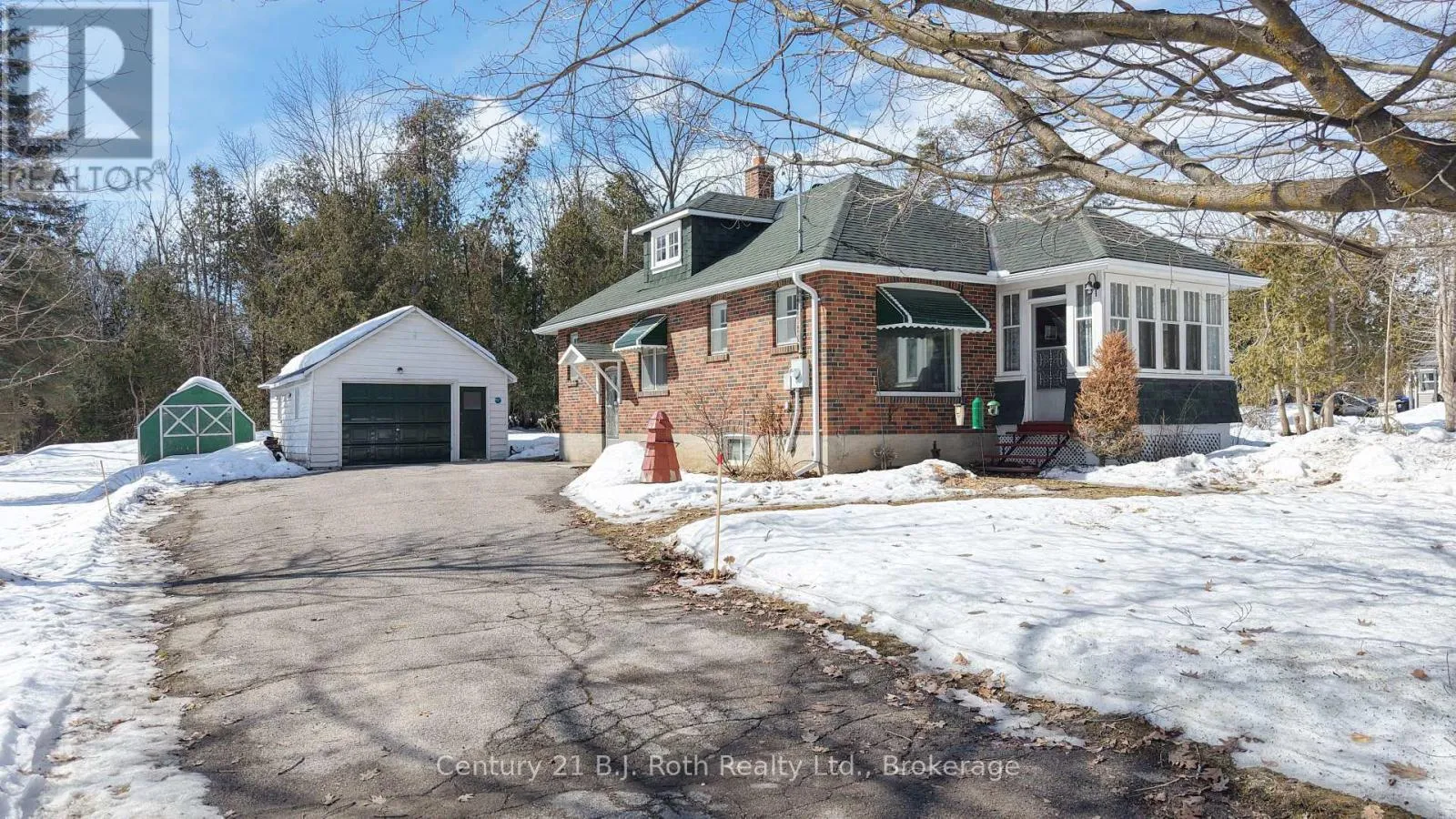 Charming Craftsman style brick bungalow situated on a beautiful double lot (over acre) in the village of Hawekstone. Surrounded by mature trees, lush gardens and backing onto township parkland, this property offers exceptional privacy and a peaceful, park-like setting.This 2-bedroom home features a bright eat-in kitchen with walkout to a spacious deck overlooking stunning perennial gardens and mature