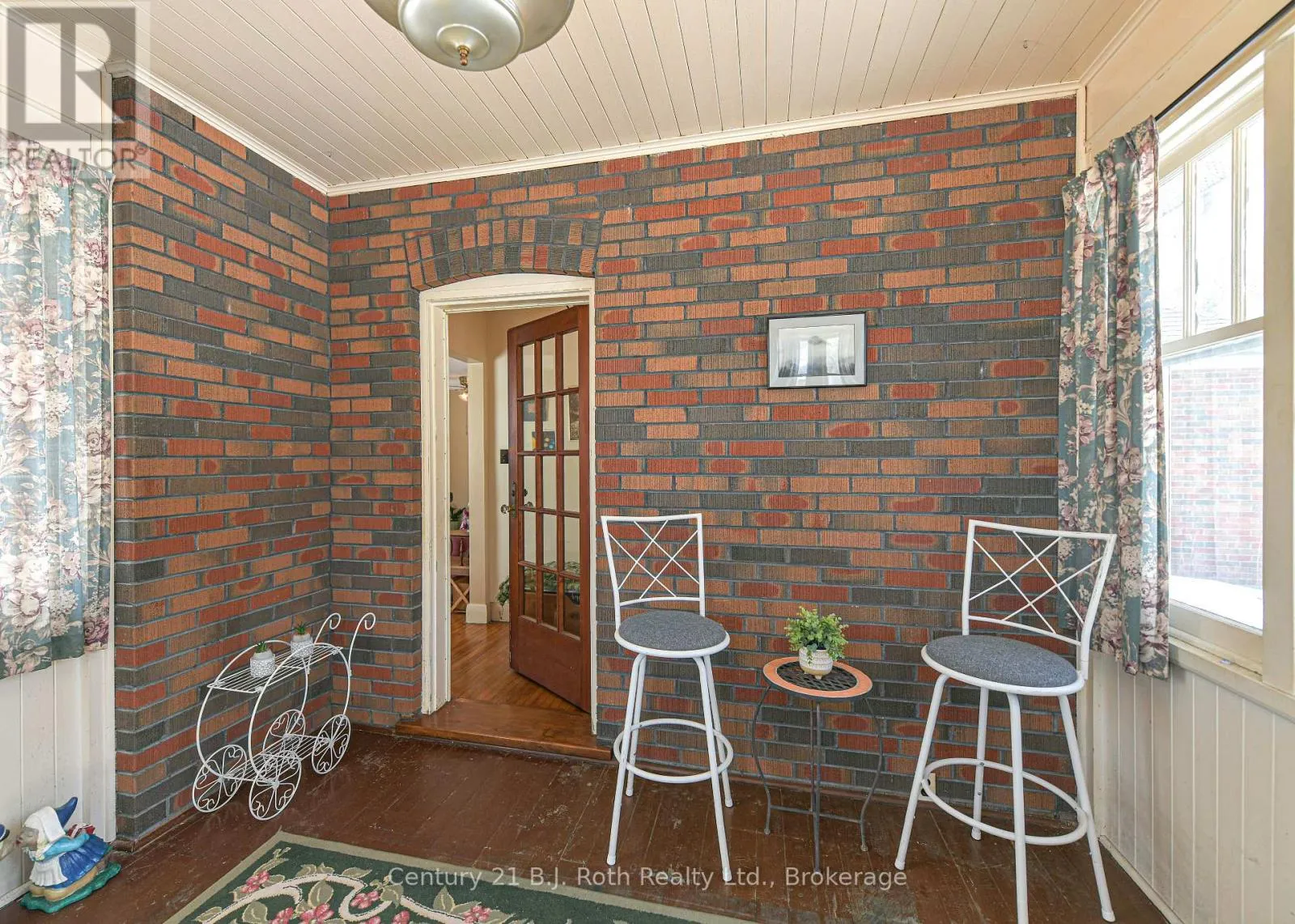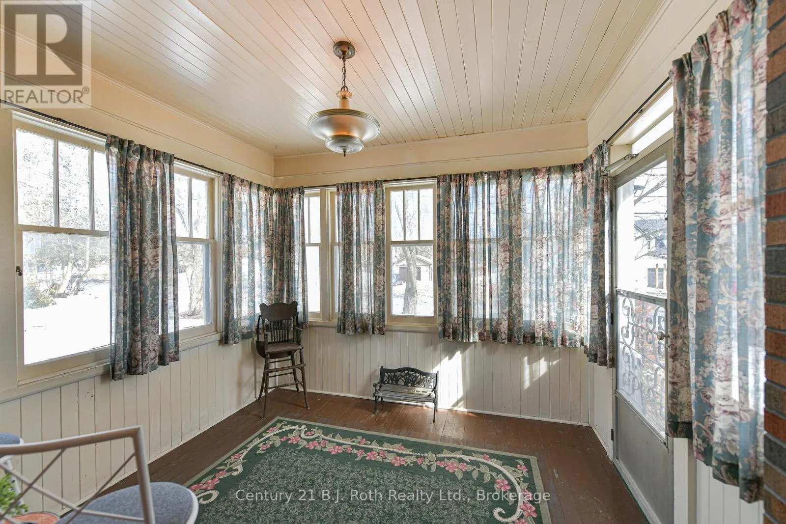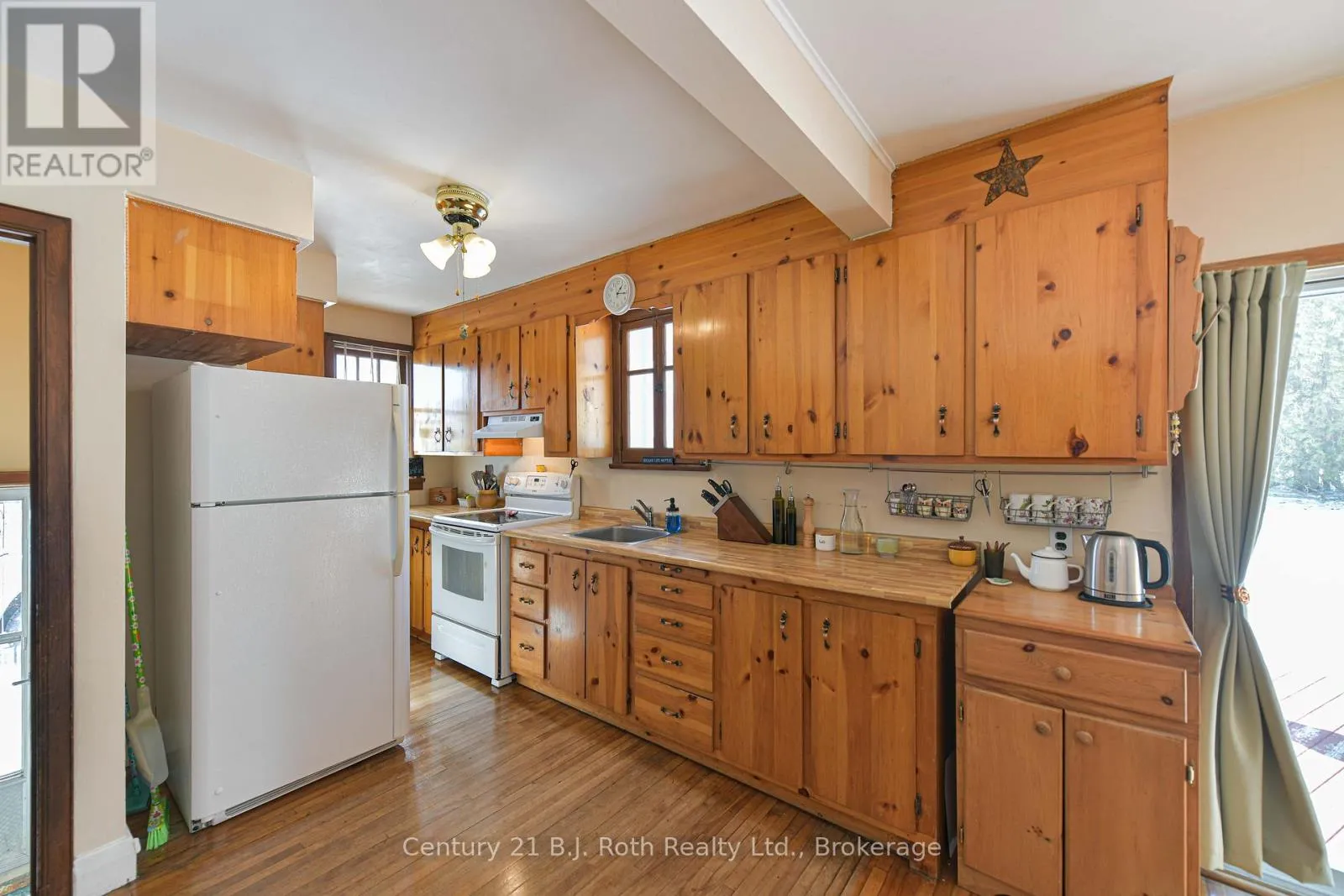 Charming Craftsman style brick bungalow situated on a beautiful double lot (over acre) in the village of Hawekstone. Surrounded by mature trees, lush gardens and backing onto township parkland, this property offers exceptional privacy and a peaceful, park-like setting.This 2-bedroom home features a bright eat-in kitchen with walkout to a spacious deck overlooking stunning perennial gardens and mature