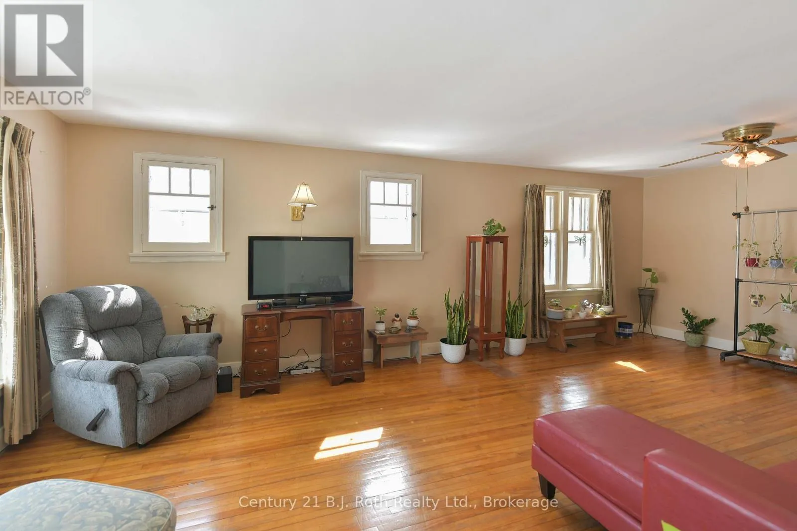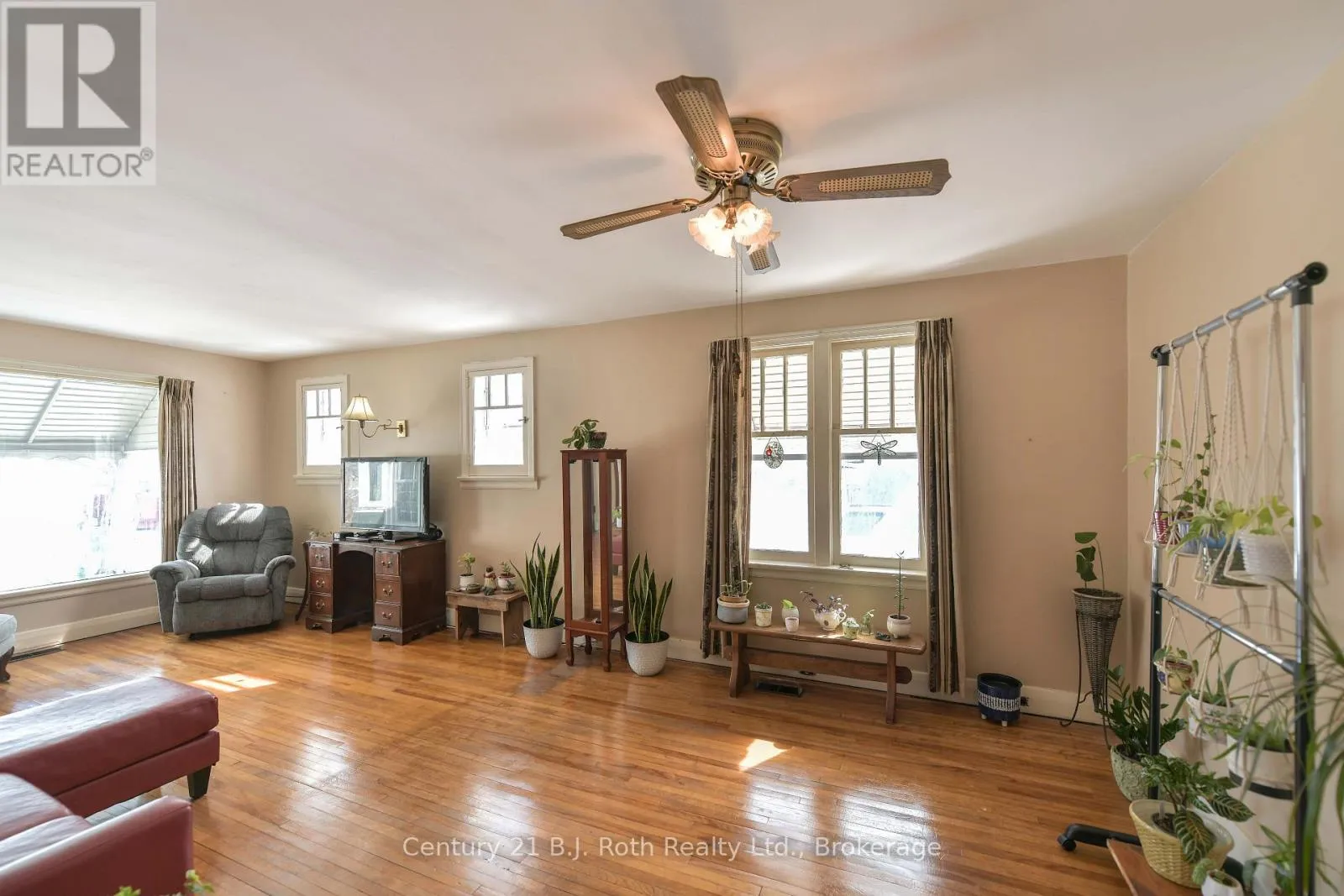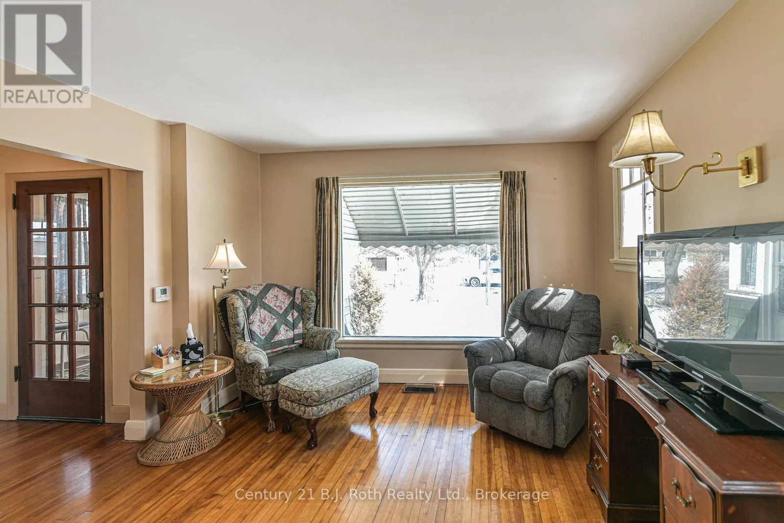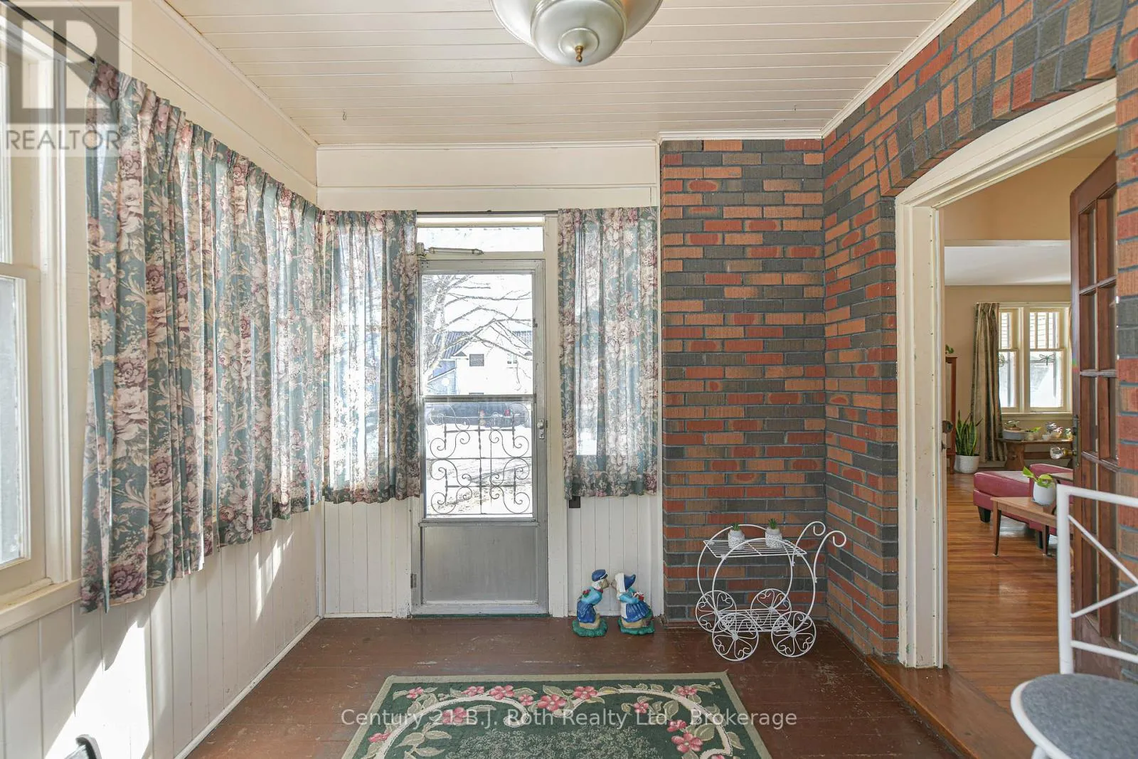 Charming Craftsman style brick bungalow situated on a beautiful double lot (over acre) in the village of Hawekstone. Surrounded by mature trees, lush gardens and backing onto township parkland, this property offers exceptional privacy and a peaceful, park-like setting.This 2-bedroom home features a bright eat-in kitchen with walkout to a spacious deck overlooking stunning perennial gardens and mature