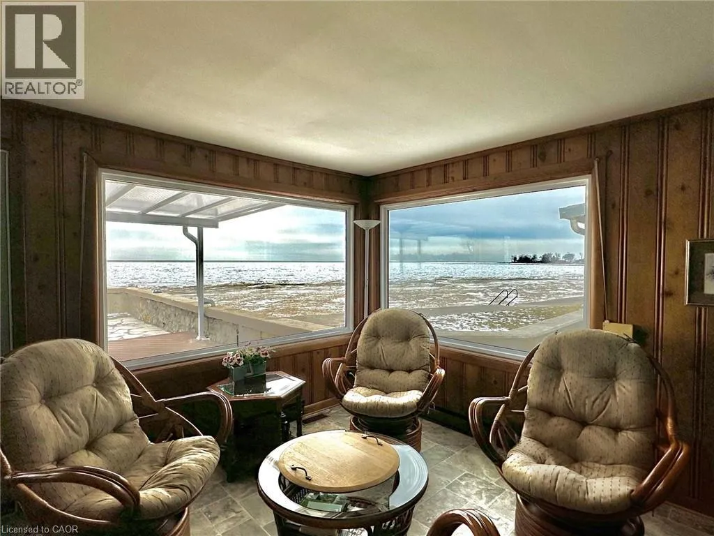 Incredible waterfront opportunity on Lake Erie! This exceptional waterfront property offers over 100 feet of shoreline, tucked away in a quiet, sought-after enclave. Lovingly maintained by the same owner for more than 20 years, this sprawling ranch-style bungalow showcases breathtaking, unobstructed water views from the moment you step inside. The welcoming interior features an open-concept, updated kitchen with rich wood