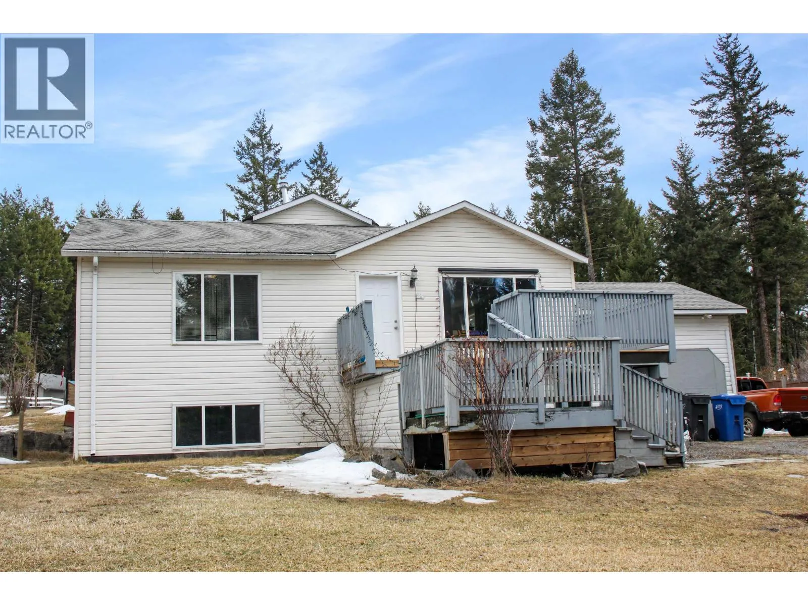 Welcome to 108 Mile Ranch living on 0.80 acres. This 4-bedroom, 3-bathroom home offers a practical layout with room to spread out, including main floor living, generous storage, and flexible space for family, hobbies, or guests. The bright kitchen offers excellent storage and opens to comfortable everyday living, while the large back deck overlooks a fully fenced yard made for