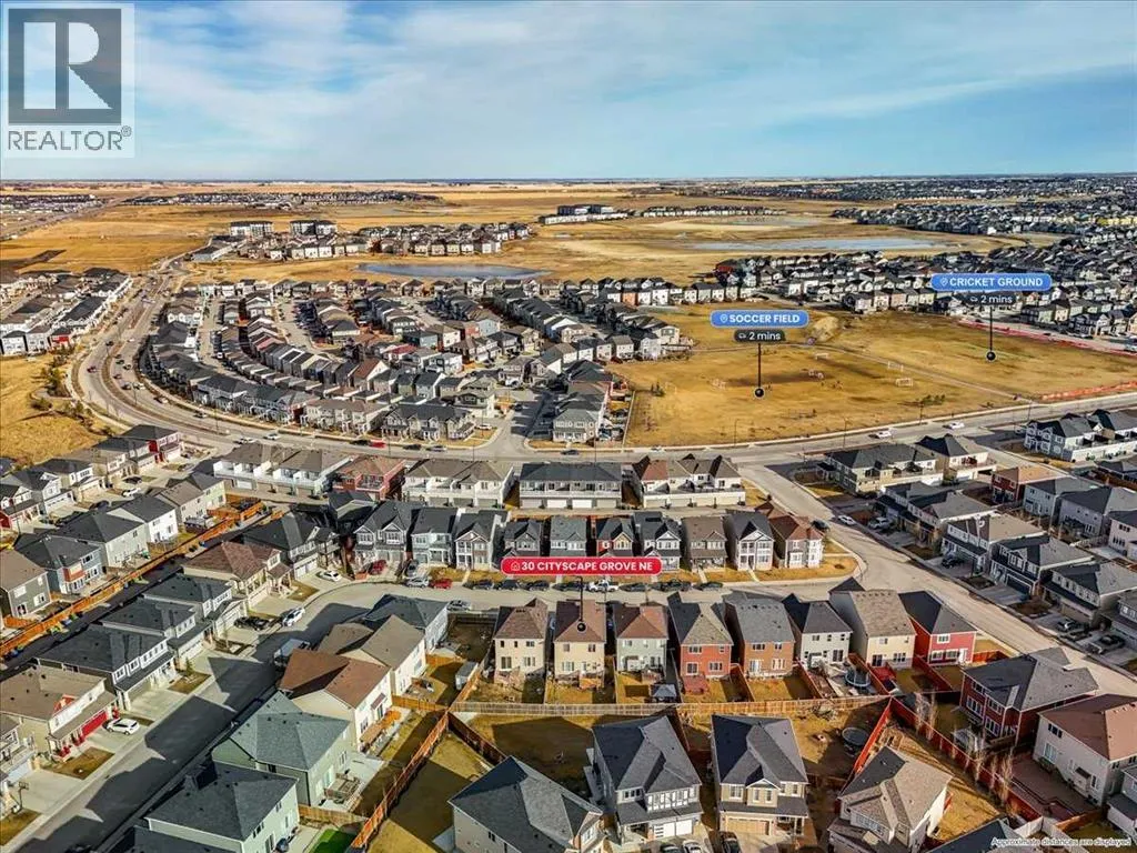 breakfast bar that naturally becomes the spot everyone gathers. The sink is set under a rear-facing window, so you’re looking out to the backyard instead of a wall—small detail, BIG difference.The main floor holds its shape—defined living and dining areas, OAK HARDWOOD THROUGHOUT, and natural light that moves through the space without washing it out. Storage is handled thoughtfully here and continues throughout the home, giving everything a place without sacrificing clean lines.Upstairs, the CENTRAL BONUS ROOM is the kind people fight over—17’ x 15’ of actual, usable space that doesn’t need to double as anything else.Laundry is right where you need it, and storage shows up again in all the right ways—including a linen closet that’s big enough to matter.The primary bedroom is a standout—generous in size, FILLED WITH NATURAL LIGHT, and positioned to feel like a true retreat at the end of the day. A walk-in closet and well-laid-out ensuite complete it, featuring a LONG VANITY WITH AMPLE COUNTER SPACE that’s actually usable day-to-day. The secondary bedrooms are both properly sized, which is harder to find than it should be.The lower level changes how this home can be used. FULLY FINISHED WITH A WET BAR, FULL BATHROOM, AND A SEPARATE WALK-UP ENTRANCE—originally completed by the builder, not added later.Set up now for guests, but the flexibility is what sets it apart—space that can shift with you over time without needing to be reworked.Outside, it’s ready to go. FENCED YARD, deck, gas line, and a NEW FRIDGE already in place (2024). The details that usually get pushed down the list are already handl ed here.Cityscape continues to prove why people move in and stay—FAMILY-DRIVEN, connected, and growing in all the right ways, including a NEW JUNIOR HIGH NEARBY. Two short blocks away, a LARGE GREEN SPACE opens up with a soccer field, cricket ground, and the start of WALKING AND BIKE PATHS—so getting outside is part of your daily routine, not a weekend plan. With QUICK ACCESS in and out for commuting, WALKING DISTANCE TO THE TRANSIT STOP THAT HEADS TO THE C TRAIN – the location works just as well during the week as it does on weekends.No filler. No compromises. Just a home that delivers where it counts—and keeps delivering after you move in. Take the next step and see it for yourself. Call your agent to book a showing. (id:64429)