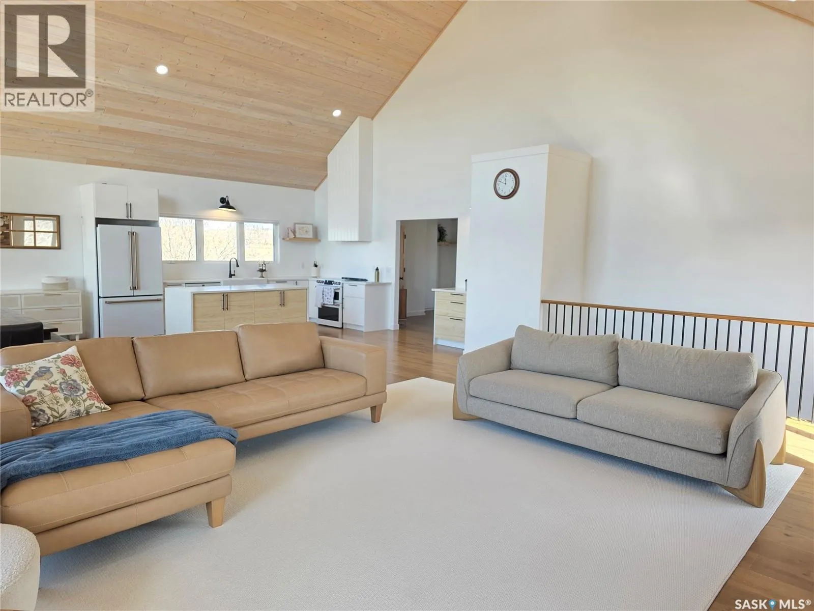 Welcome to this stunning, newly built (2022) 5-bedroom, 3-bathroom home, offering the ultimate blend of modern elegance and comfortable Lakeside living. Step into the main level and be greeted by a bright, open-concept layout. The striking wood vaulted ceiling, finished in warm, natural tongue-and-groove wood planking, creates an inviting and airy atmosphere. The living room is centered around a classic