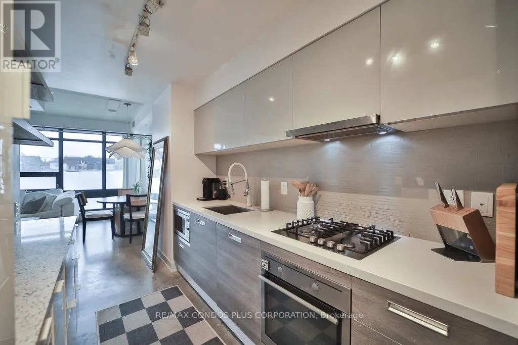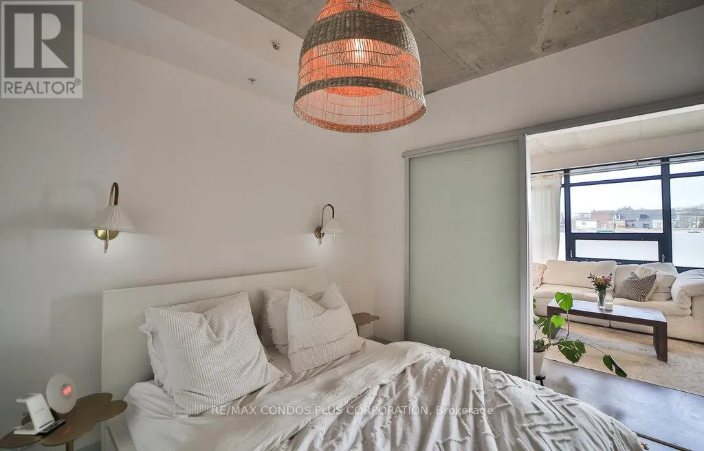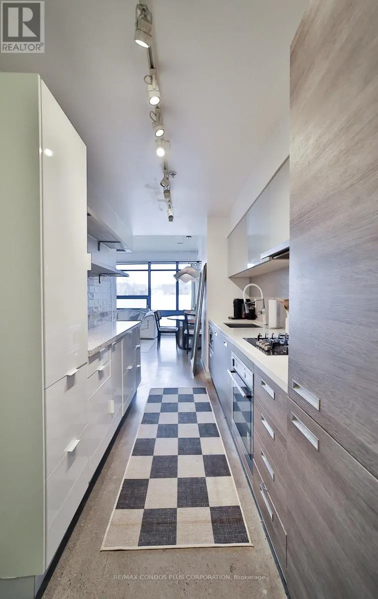The Abacus Lofts – A Unique and Stylish Condo In Trinity-Bellwoods/Ossington. Spacious, High and Bright One Bedroom with High Ceilings and Floor to Ceiling Windows. Steps From Grocers, The Park, Cafes, The Ossington Strip, Restaurants. This Unit Has Been Updated With A Concrete Floor, Floating Shelves In The Living Room, Custom Cabinets In The Bedroom, And An