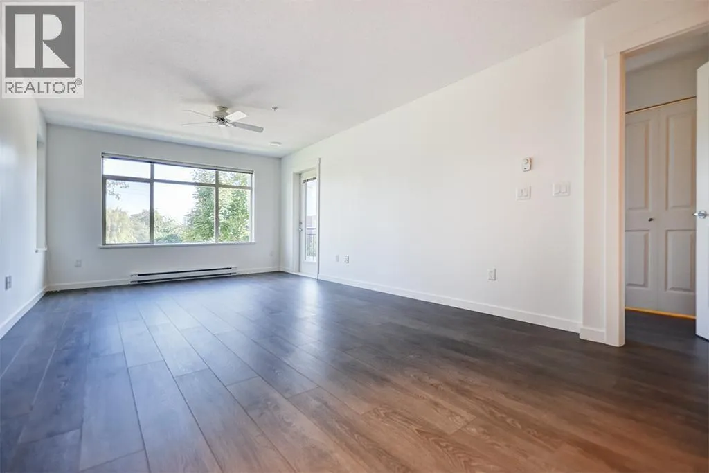 This 926sf 2 bedrooms 2 bathrooms unit has a very functional and spacious layout maximizing utility of all interior spaces. The entrance opens up directly into the living area without hallways. Upgraded with laminate floors throughout. The rectangular living-dining area has ceiling fan over living room, simple light fixture over dining area, and access to the balcony. The gourmet kitchen