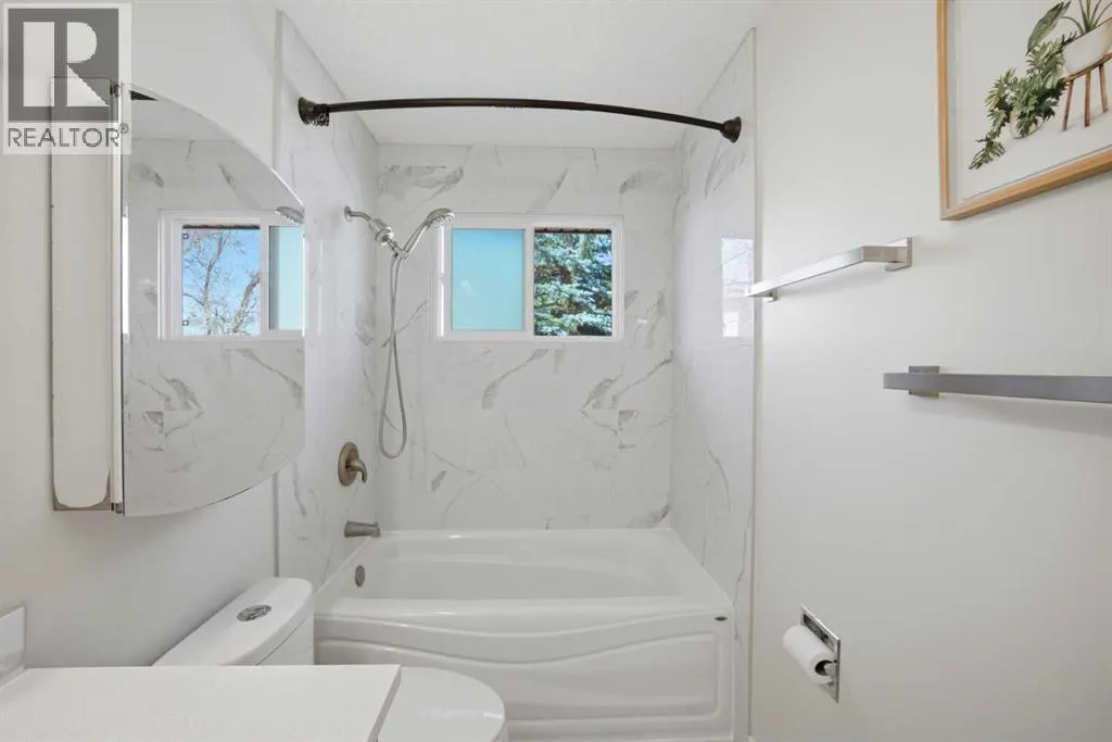Step inside to discover a bright and inviting living and dining area, seamlessly connected to an open-concept kitchen and eating nook, perfect for both everyday living and entertaining. The sunken family room is the heart of the home, featuring a stunning two-sided fireplace—ideal for cozy winter nights.The main floor is complete with 3 generously sized bedrooms and 2 fully renovated