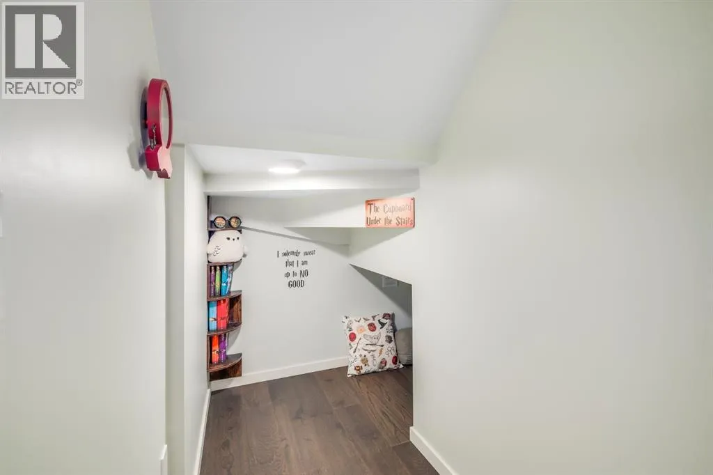 the boulevard on three sides. Walkability to the THREE nearby parks, a pond, two schools, and amenities/professional services is highly desirable. Leave the car at home. Now let’s talk curb appeal…The southeast-facing wrap-around porch w/ slip-free composite surface is made for morning coffee in the sun. The rear courtyard hosts an extensive 30’ x 20’ patio that soaks up afternoon and evening light, while offering shade trees to a host of songbirds. The yard is fully fenced with steel fencing, gated arbours, a garden shed, and no grass to mow. Passive sub-irrigation to front and rear gardens using downspouts and weeping tile is smart & efficient. Low-maintenance, high-enjoyment living at its finest. Inside, this home is anything but cookie-cutter. It’s colourful, joyful, and full of personality — thoughtfully upgraded with texture, custom lighting, custom blinds, forever floors, and built-in details that balance warmth with smart efficiency. The main floor welcomes you with tile and hardwood floors, and a spacious foyer that captures the spirit of the west, with a place for everything. The kitchen pops with Portuguese tile backsplash, quartz counters, stone-faced island, under-cabinet lighting, upgraded SS appliances, and clever pull-outs for garbage, recycling, and more, with easy access to meals on the patio. The living room features a stone-faced gas fireplace, custom live-edge floating shelves, and a retractable TV support. Upstairs, floors are engineered hardwood and tile. The primary bedroom offers mountain and boulevard views, built-in mirrored closets (no dressers), and a 4-piece ensuite with soaker tub, separate shower, twin ves sel sinks, and waterfall faucets. There are two more bright bedrooms off of a hallway alcove with custom closet built-ins. The second-floor also features a full bath, convenient laundry room, and a bonus room/office space overlooking the patio. The finished basement features a fourth bedroom (or rec rm/hobby rm), a 3-piece bath, a rec/yoga space, and your own Cupboard Under-the-Stairs storage nook with a little Harry Potter charm. The fully finished attached double garage (17’ x 21’) was the original showhome office and is polished to match — plus you have a custom paver walkway, central vac, A/C, HRV system, 92% high-efficiency furnace, 75-gallon Marathon hot water tank, and a full Eufy security camera system already installed. This home was designed to stand out — and it still does. If you’re looking for something with personality, outdoor living that actually feels usable, and a location that makes everyday life easy… 12 Sunrise View might just be your perfect match. Come experience the energy. (id:64429)