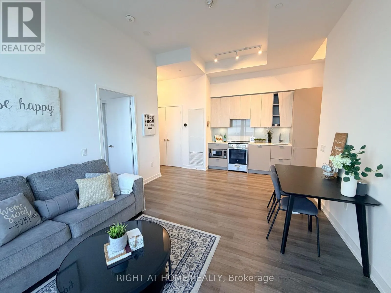 Welcome to this partly furnished Luxury M City Condo Located At The heart of city center! Large 570 sf one bed one bath, with a parking. STUNNING 11 FEET HIGH CEILING!! Spacious living area flooded with natural light through Floor to ceiling window. Functional open concept Layout, Huge Balcony. Modern Open Concept Modern Kitchen with sleek cabinetry, quartz countertop, and