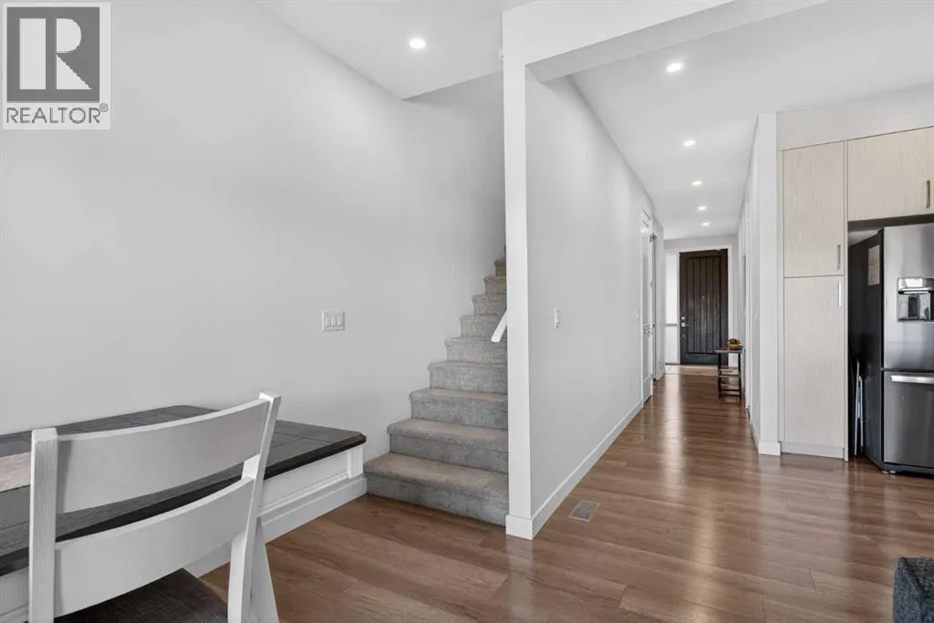 AND Primary Bedroom, all situated at the furthest corner of Arrive at Crestmont West. SEE the iGuide and 3D Floor Plan LINK before you experience in person. A stunning 2034 square feet of developed space offers 4 Bedrooms, all with Desk-space, 3.5 Bathrooms, Studio-style permit-finished Basement, a large Foyer, full-sized Dining and Living Rooms, a contemporary wrapped Kitchen with wide eating bar, upper level Laundry, tons of Storage AND as a bonus, a 25.5′ x 11′ Garage with full driveway, to hold the biggest truck, or standard vehicle-plus-other-hobby gear. FUN FACT: these perfectly designed 2-Storeys have full Basements, plus front AND rear windows, basement patio and yard, overshadowing the double garage units that LACK basement function, have attached rear neighbours, smaller size total, no rear windows and no full use yard (see our RPR with Compliance). 116 Crestridge Common SE is filled with gorgeous upgraded high-end finishings, like luxury vinyl plank and tile floors through the Main, Basement, Foyer, Bathrooms and Laundry, 8′ high interior main doors, slab-style soft-close cabinets with full-height pantry and pot-pan drawers, stone counters throughout, undermount sinks, stainless appliance package, roller blinds, tankless hot water, active HRV/HVAC, pot lighting, sleek plumbing and lighting fixtures, a gas line at BBQ, a water line in the Garage – don’t wait for this one-of-a-kind home in a perfect location. Per-Room-Perks: Primary has Walk-in Closet with window, personal Ensuite, 2-sinks, 5′ shower, and private water closet; Bed 2 and 3 have South windows with no front-facing other property; Main Bathroom has soaker tub/shower and is extra-deep for additional comfort; Laundry has width to keep useful cleaning products; Linen Closet is wide and convenient; Living Room is deep enough to allow Desk and Eating Bar full use; Dining can have extended Table; Basement Development is versatile for Bedroom, Rec or Media, Home Office or Business, Gaming, or Entertainment, Storage-Utility is huge and Tankless Water Tank gives more room including under-stair Storage, and the HUGE Garage is over-sized in both width AND depth. This complex is also YOUNG – Alberta New Home Warranty started 2022 – ask your favourite agent to give you the documents right away, to show the advantages of 116 Crestridge Common SW – don’t wait! (id:64429)