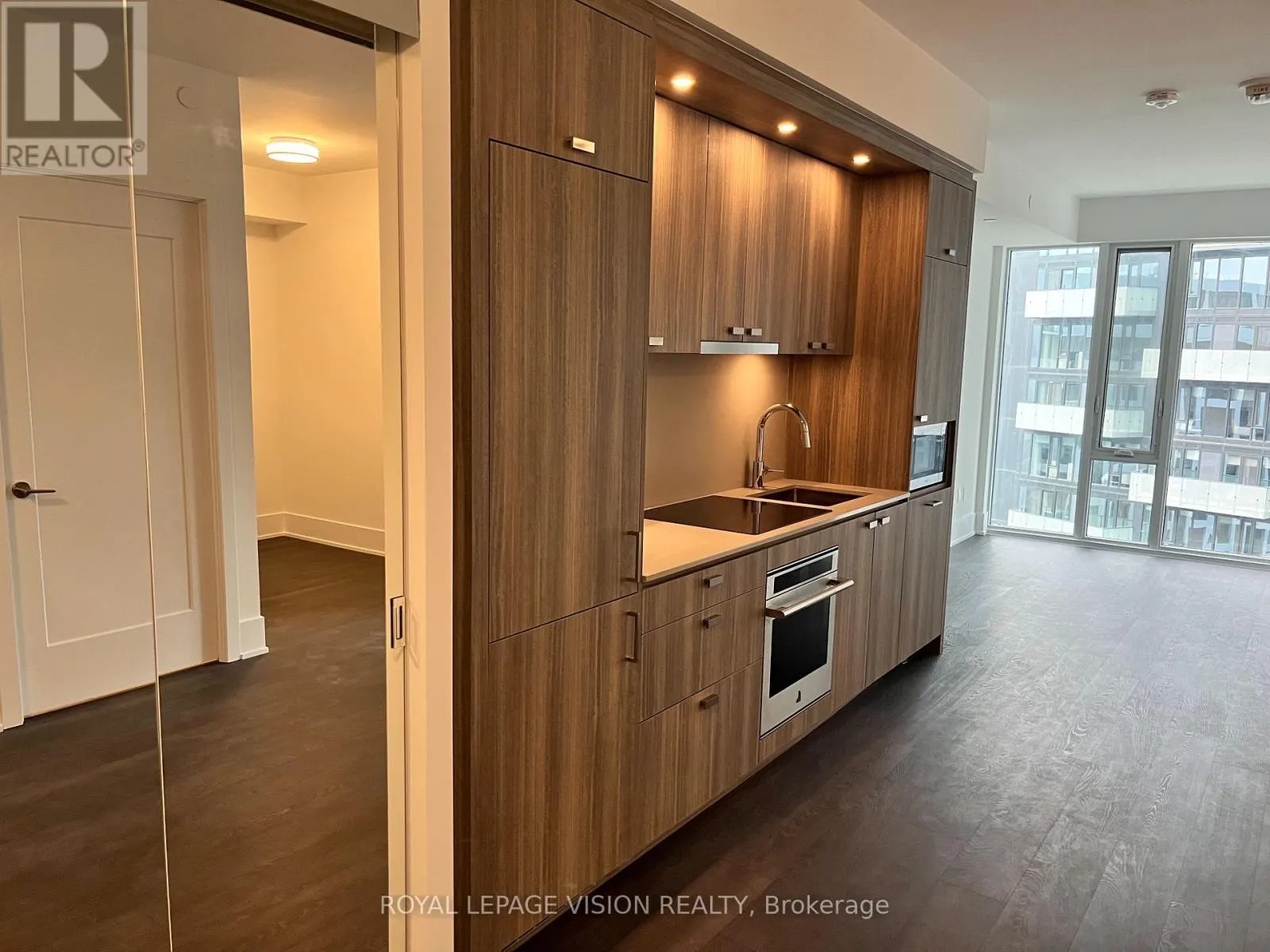 Live in style in this sun-filled luxury 1 bedroom + den condo suite on the 12th floor, offering approximately 600 sq ft of open-concept living space with 9 ft ceilings and floor-to-ceiling windows. The functional layout features laminate flooring throughout, a separate den ideal as a home office or potential second bedroom, full-size in-suite laundry, large mirrored closets, and a